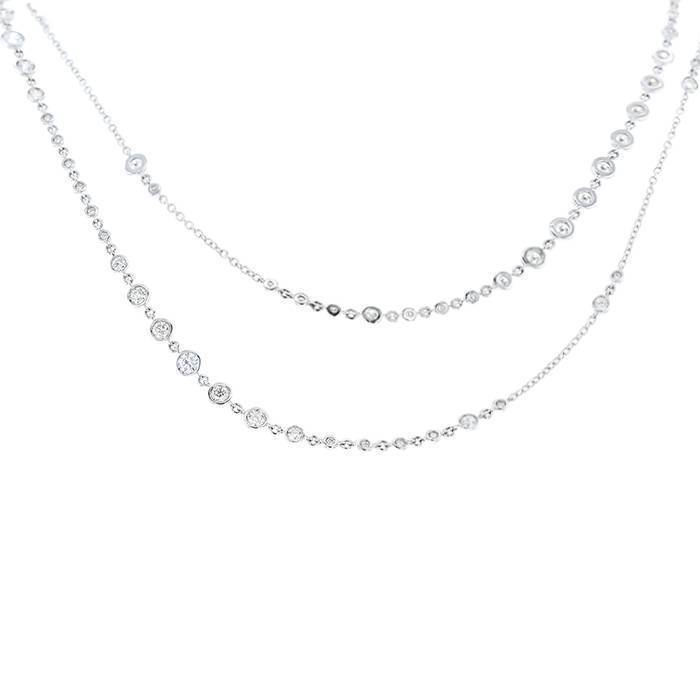 Collar de oro blanco y diamantes, compuesto de una delicada cadena de oro blanco, adornado de una sucesión de delicados diamantes de talla brillante pesando en total 3,14 quilates.
