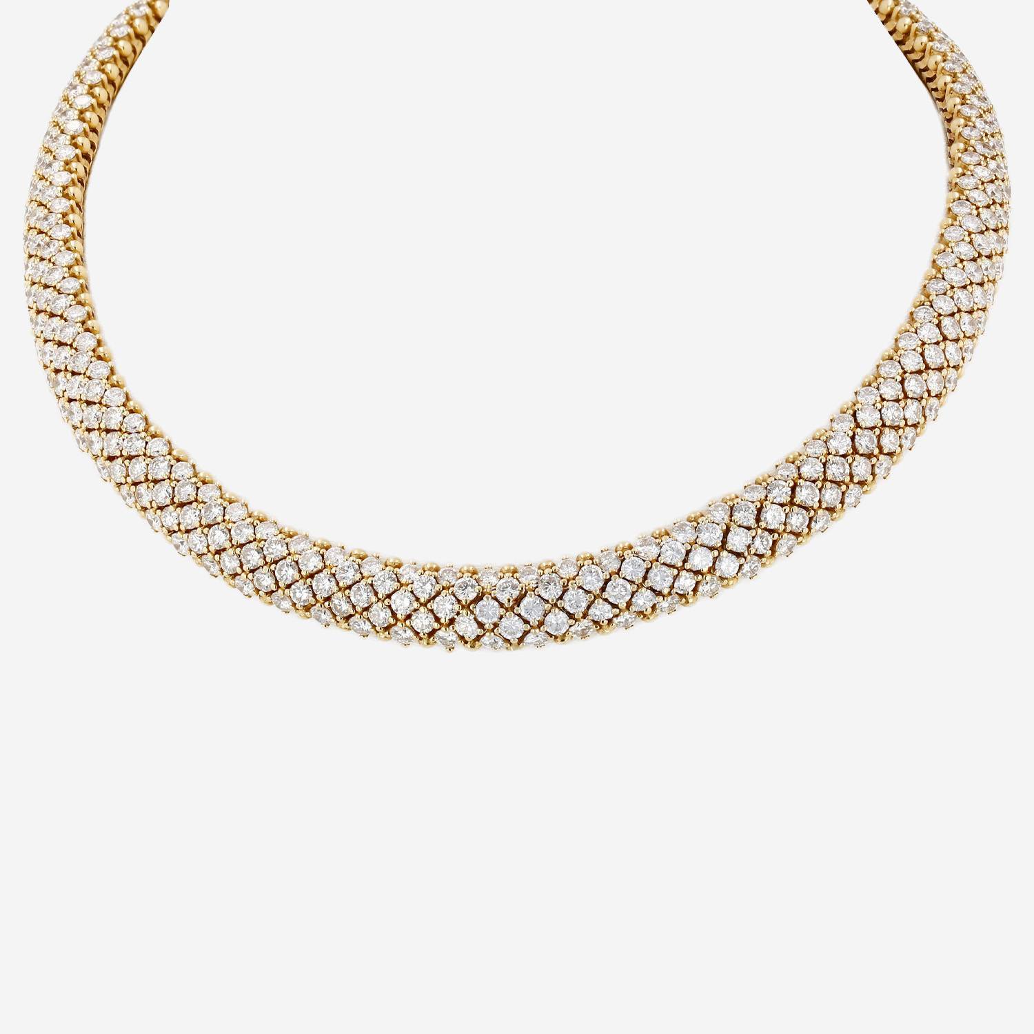 Collar época años 90 Boucheron de oro amarillo y diamantes, compuesto un espléndida cinta elegantemente engastada de diamantes de talla brillante de aproximadamente 34 quilates en total.