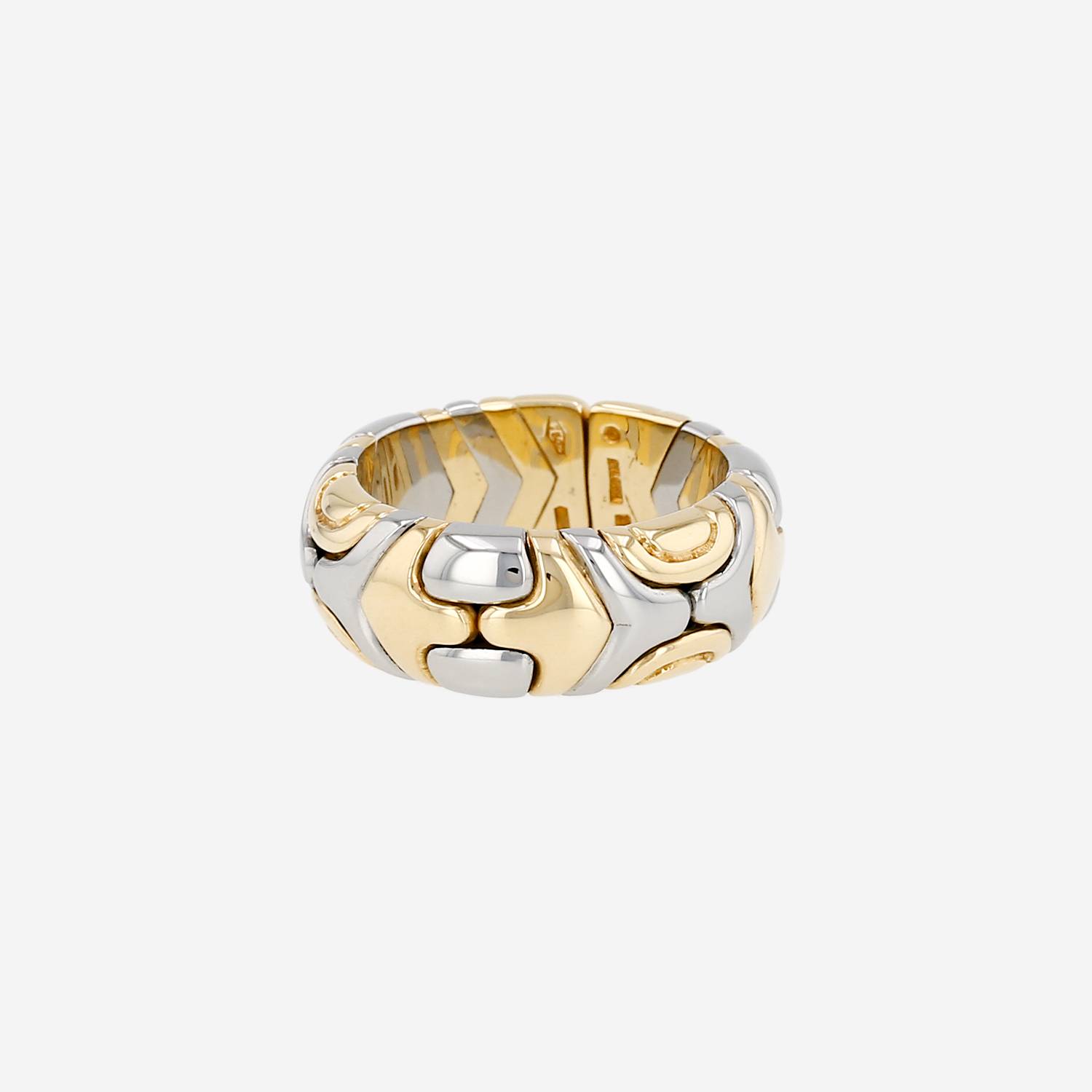 Sortija semirrígida Bulgari Alveare de oro amarillo y acero, compuesta de una alternancia de eslabones de oro amarillo, de acero.