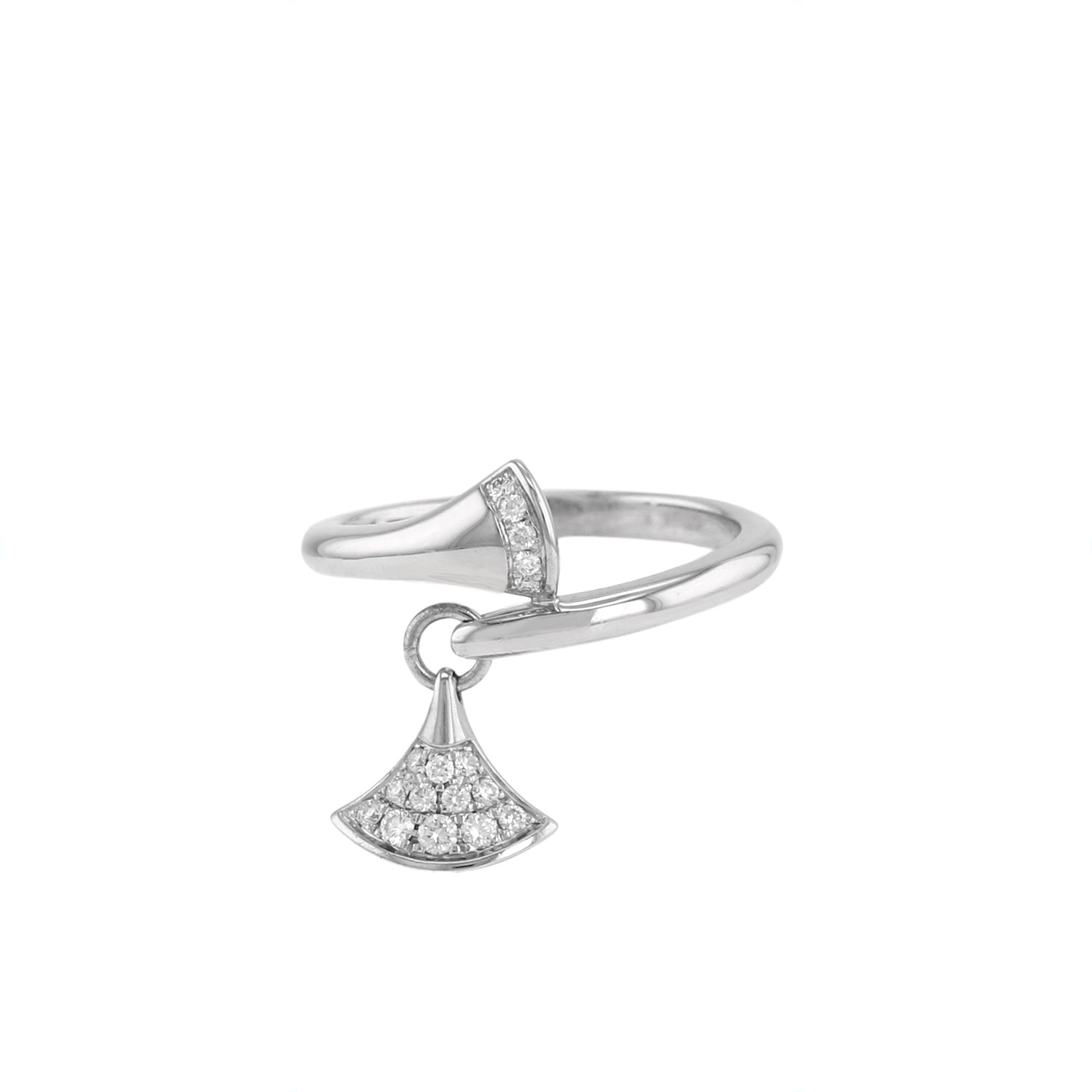 Sortija Bulgari Diva's Dream de oro blanco y diamantes, compuesta de un anillo con forma de espiral, realzada de una colgantes.