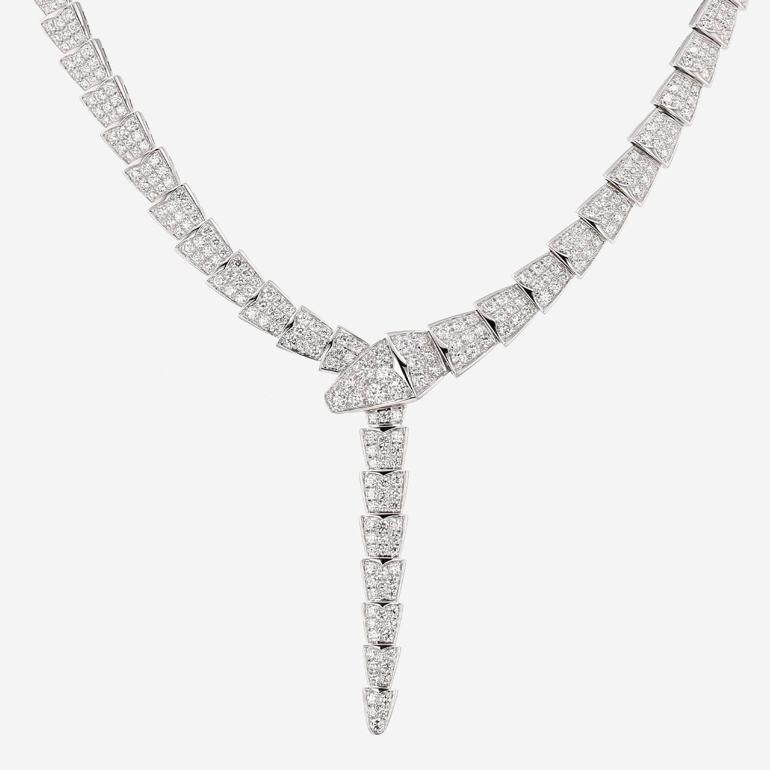Collar articulado Bulgari Serpenti Viper modelo grande de oro blanco y diamantes, en el cual figura un serpiente ondulada de oro blanco enteramente engastada de diamantes de talla brillante 14,66 quilates de de aproximadamente.