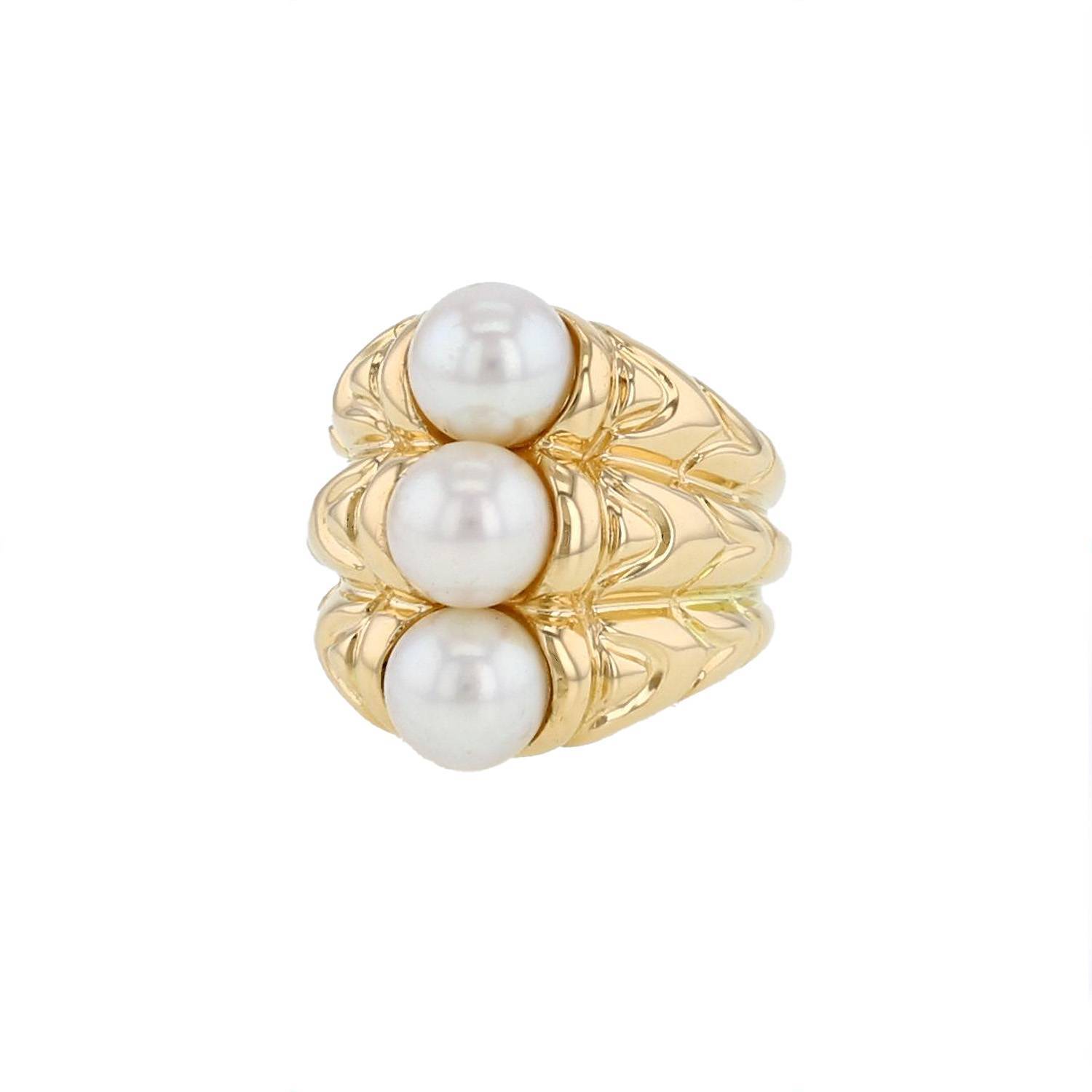 Sortija Bulgari de oro amarillo y perlas, compuesta de una importante engaste de oro amarillo, adornada de perlas.