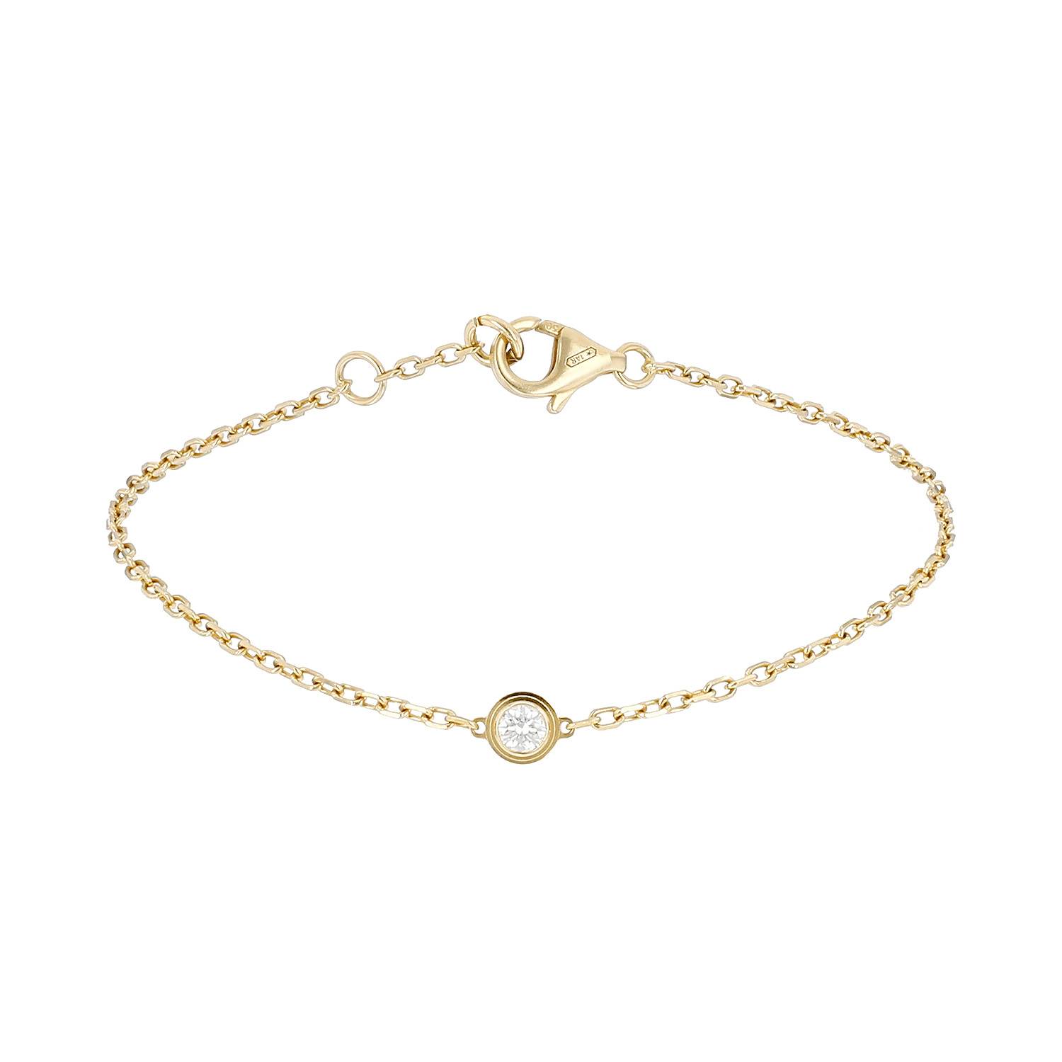 Brazalete Cartier Cartier d'Amour modelo pequeño de oro amarillo y diamante, compuesto de una delgada cadena de eslabones encadenados de oro amarillo, que sujeta en el centro un diseño redondo delicadamente engastado de un diamante de talla brillante 0.10 ct., realzado en el cierre del intemporal doble C Cartier.
