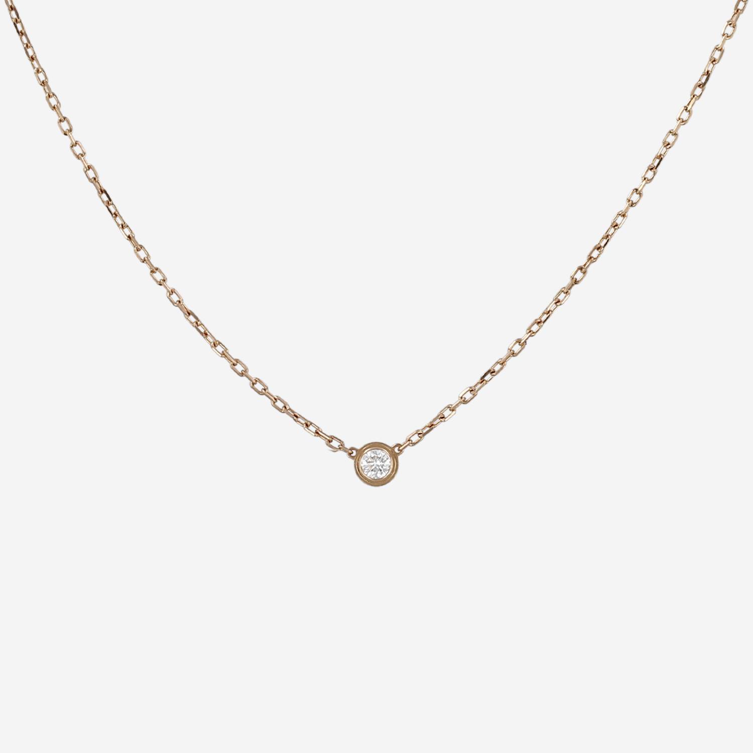 Collar Cartier Cartier d'Amour modelo pequeño de oro rosa y diamante, compuesto de una delgada cadena de eslabones encadenados de oro rosa, que sujeta en el centro un diseño redondo delicadamente engastado de un diamante de talla brillante de 0.09 quilate, realzado en el cierre del intemporal doble C Cartier.