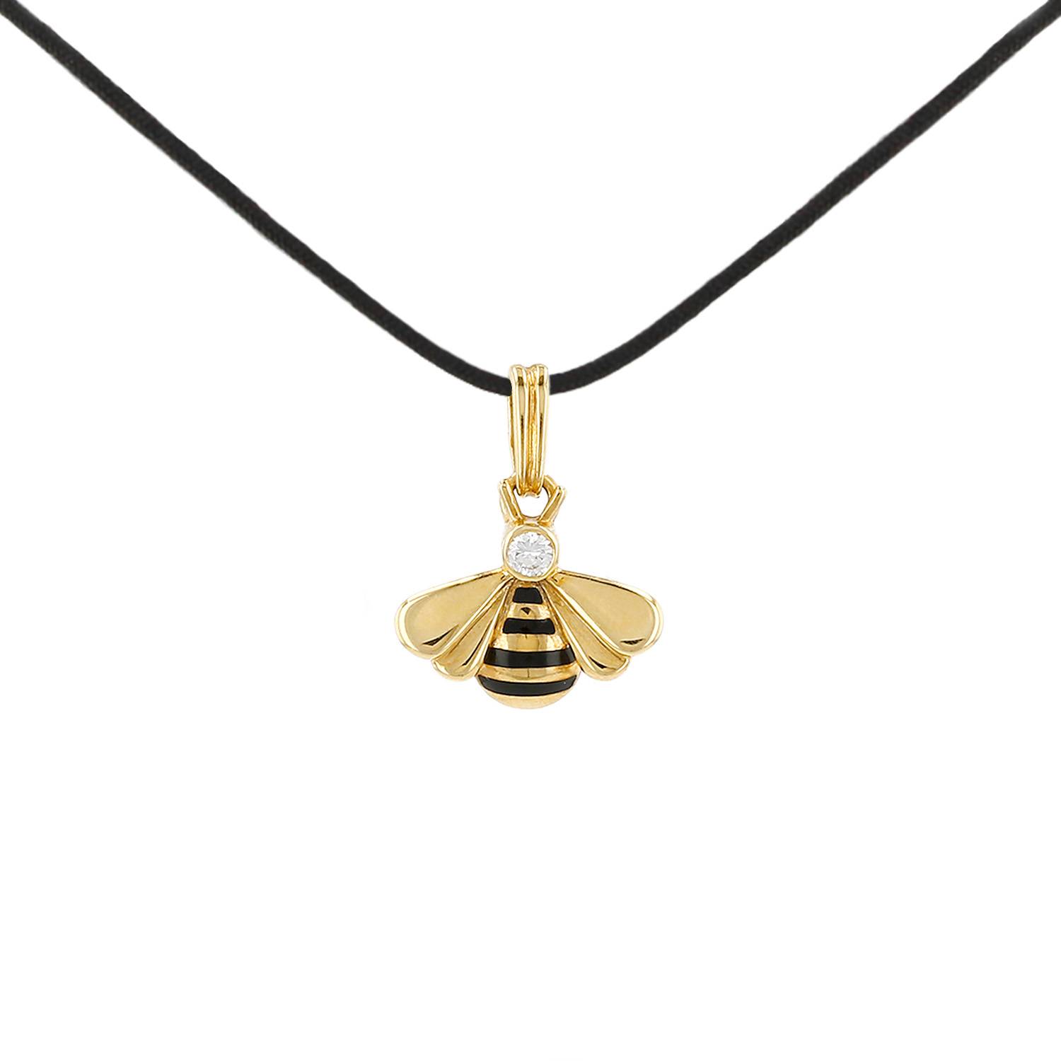 Colgante Cartier de oro amarillo, de laca, y en diamante, en el cual figura una abeja de oro amarillo, de esmalte negro, adornado de un diamante de talla brillante pesando de aproximadamente 0.10 quilate.
