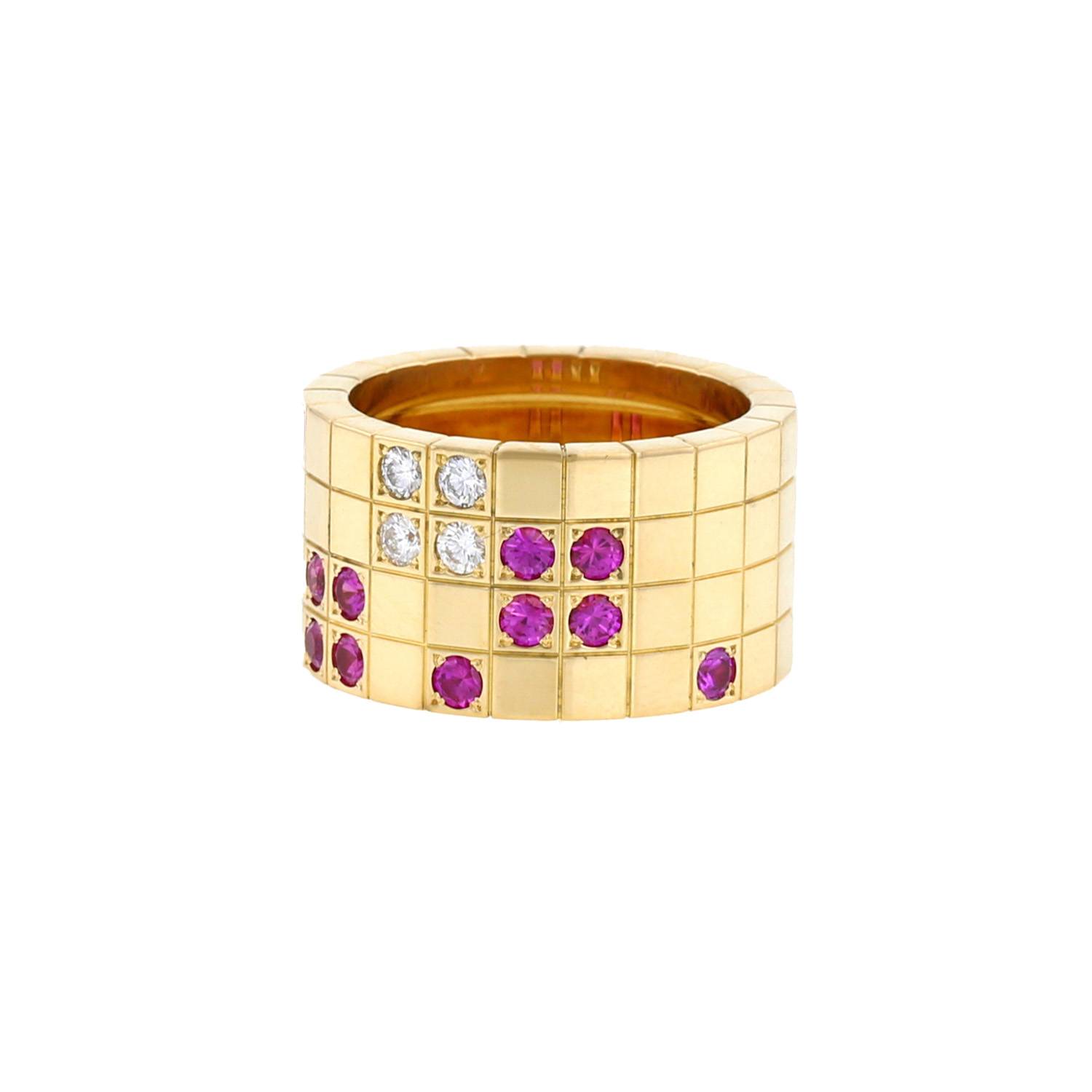 Sortija Cartier Lanière de oro rosa, de zafiros rosas, y en diamantes, compuesta de un importante anillo facetado de oro rosa, adornada de una alternancia de zafiros rosas y de diamantes de talla brillante.