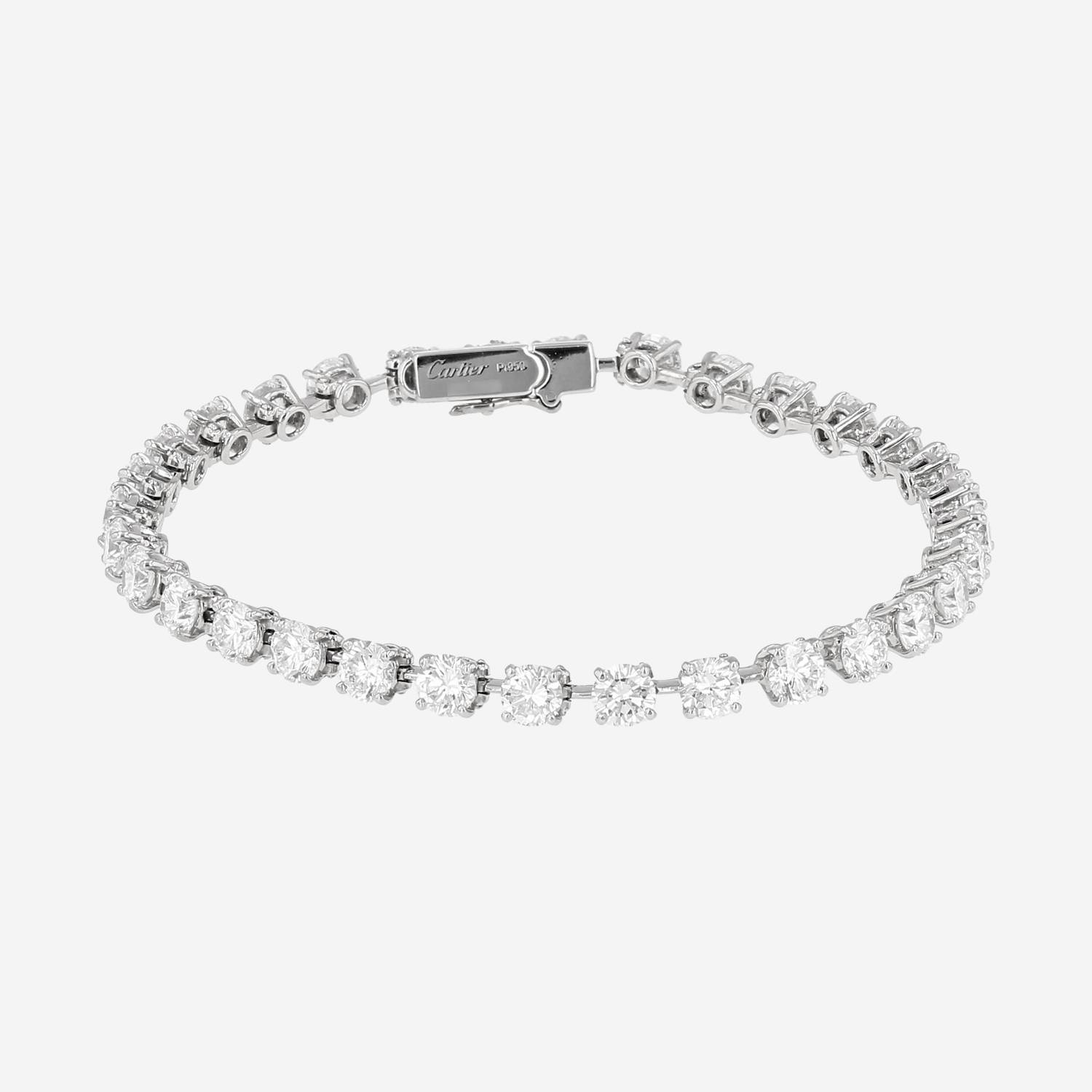 Brazalete Cartier Lignes Essentielles de platino y diamantes, que forma una línea de diamantes semiarticulada de talla brillante de aproximadamente 9,6 quilates.