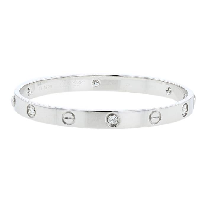 Brazalete Cartier Love 6 diamants de oro blanco y diamantes, compuesto de un anillo liso de oro blanco delicadamente engastado de diamantes de talla brillante.
