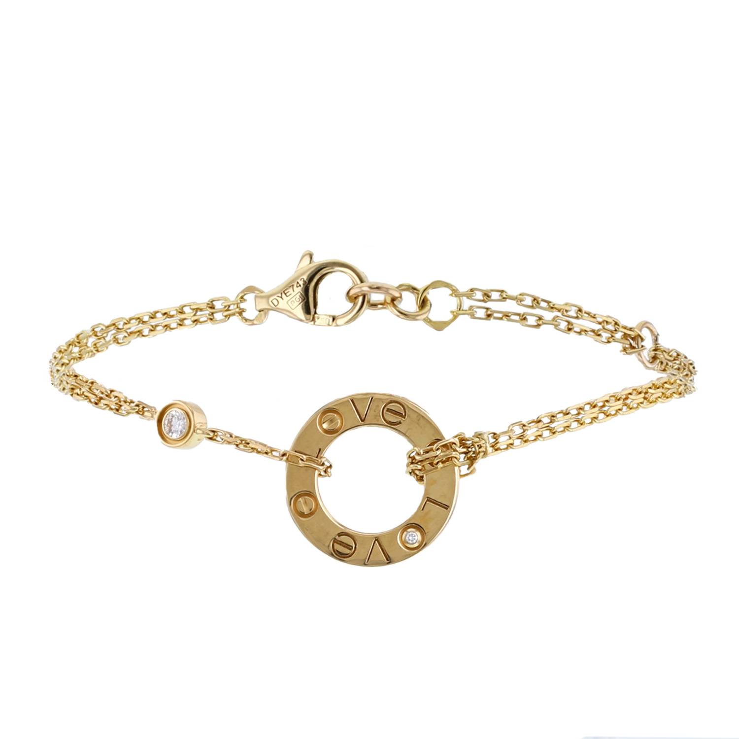 Precioso brazalete Cartier Love de oro amarillo y diamante, compuesto de un elegante anillo grabado de oro amarillo, realzado de una cadena de eslabones encadenados de oro amarillo delicadamente engastada cerrado de un diamante de talla brillante.