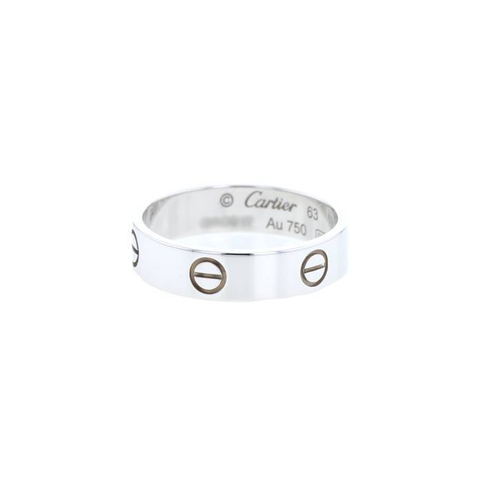 Preciosa sortija Cartier Love de oro blanco, compuesta de un elegante cinta lisa, adornada de diseños de tornillos grabados.
