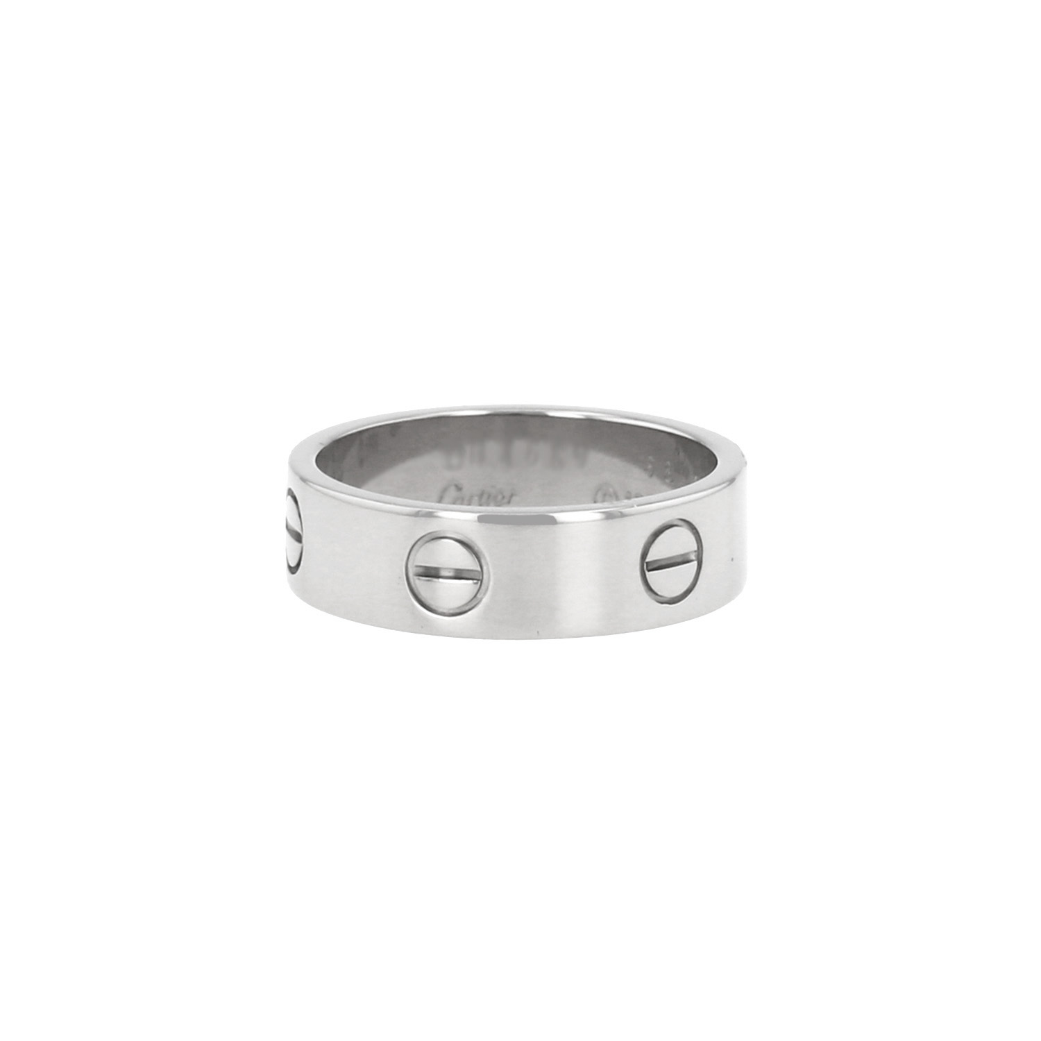 Sortija Cartier Love de oro blanco, compuesta de un elegante cinta lisa, adornada de diseños de tornillos grabados.