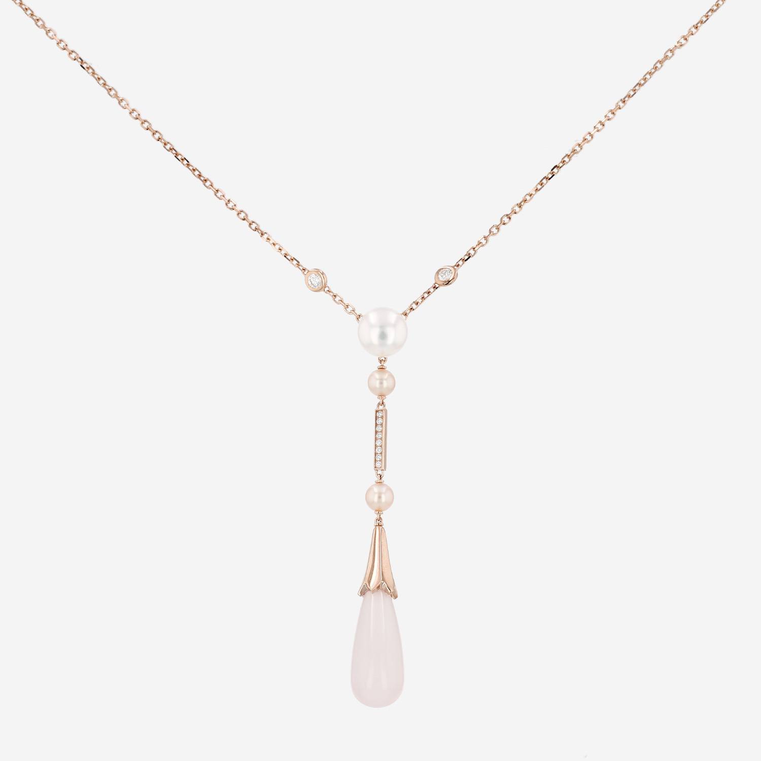 Collar Cartier Monica Bellucci de oro rosa, de cuarzo, y en diamantes, compuesto de un diseño piriforme de oro rosa delicadamente engastado de un cuarzo de talla pera, realzado de una línea de diamantes de talla brillante de aproximadamente 0.05 quilate perlas, sujetado por una delgada cadena de oro rosa.