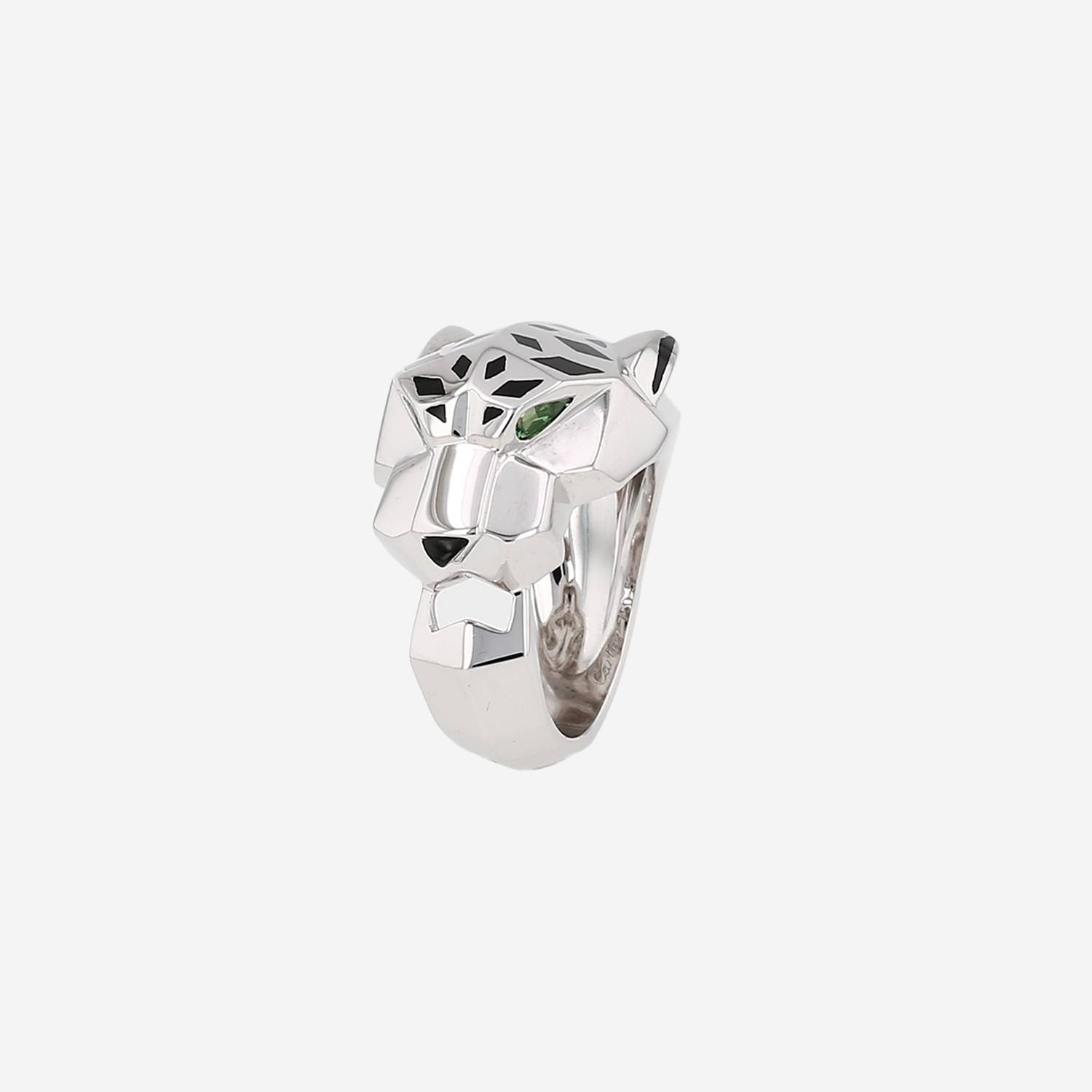 Sortija Cartier Panthère de oro blanco, tsavoritas, ónix y laca negro Ref Collector Square: 42 82 32