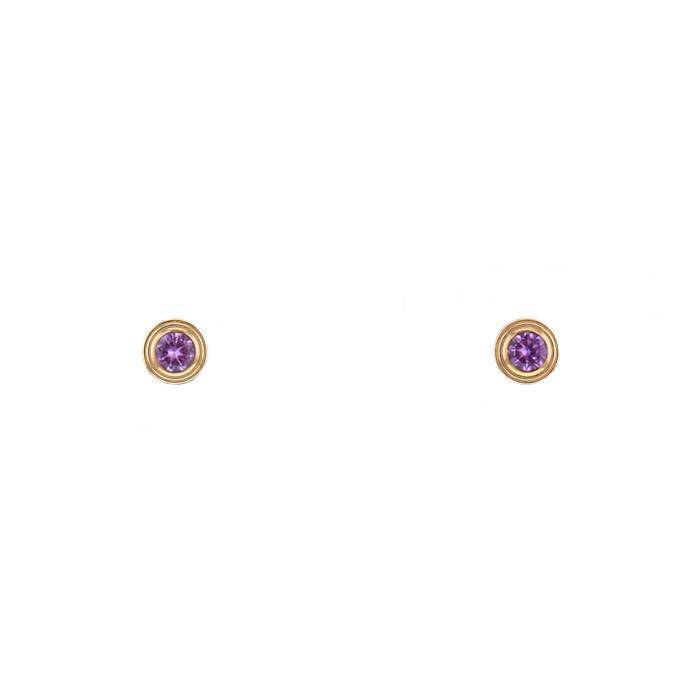 Preciosos pendientes Cartier Saphirs Légers de oro rosa y zafiros rosas, compuestos de un delgado engaste a gradas de oro rosa, adornados en el centro de un muy bonito zafiro facetado de talla redonda.