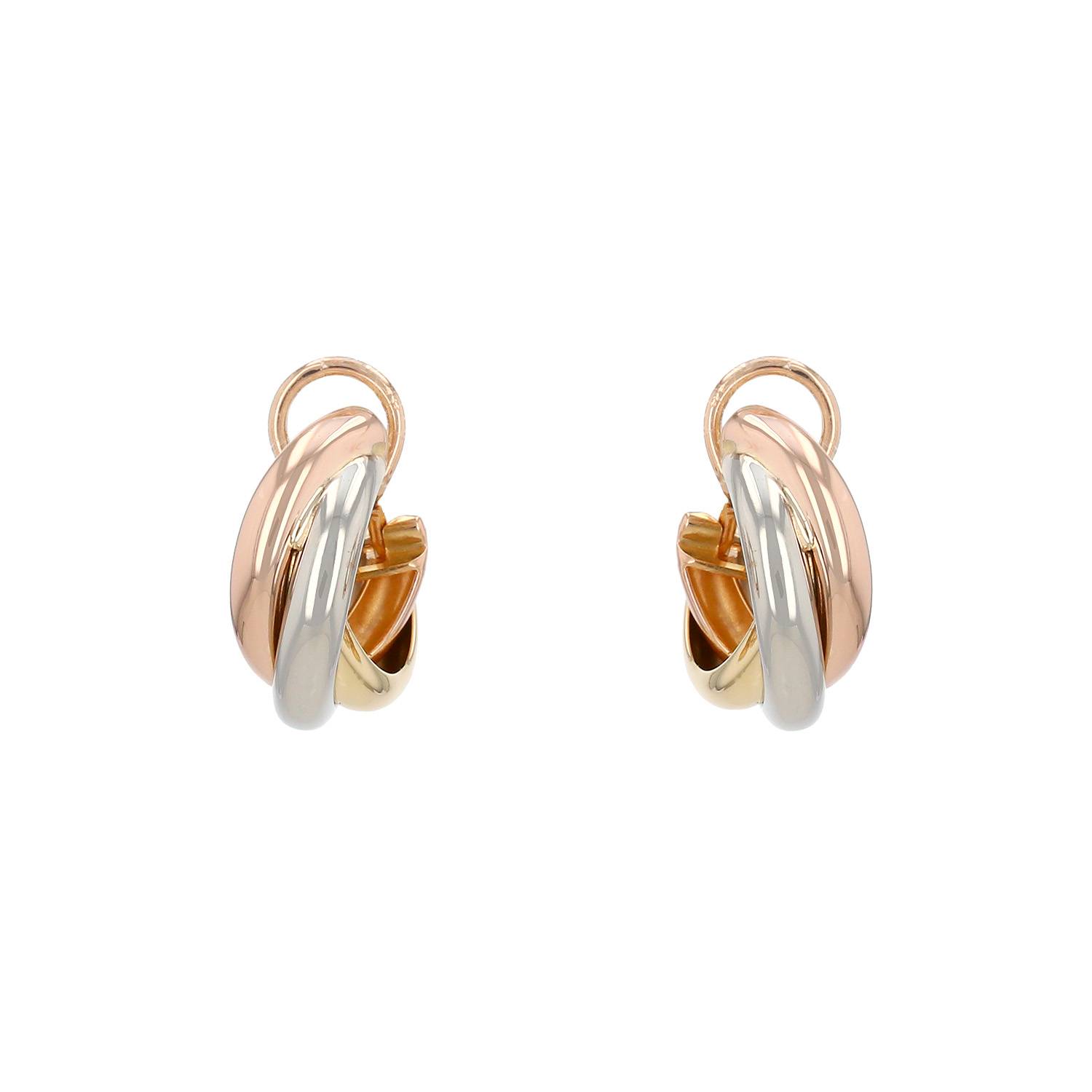 Pendientes Cartier Trinity de 3 oros, compuestos de una sucesión de 3 elegantes anillos entrelazados de oro amarillo, de oro rosa y en oro blanco.