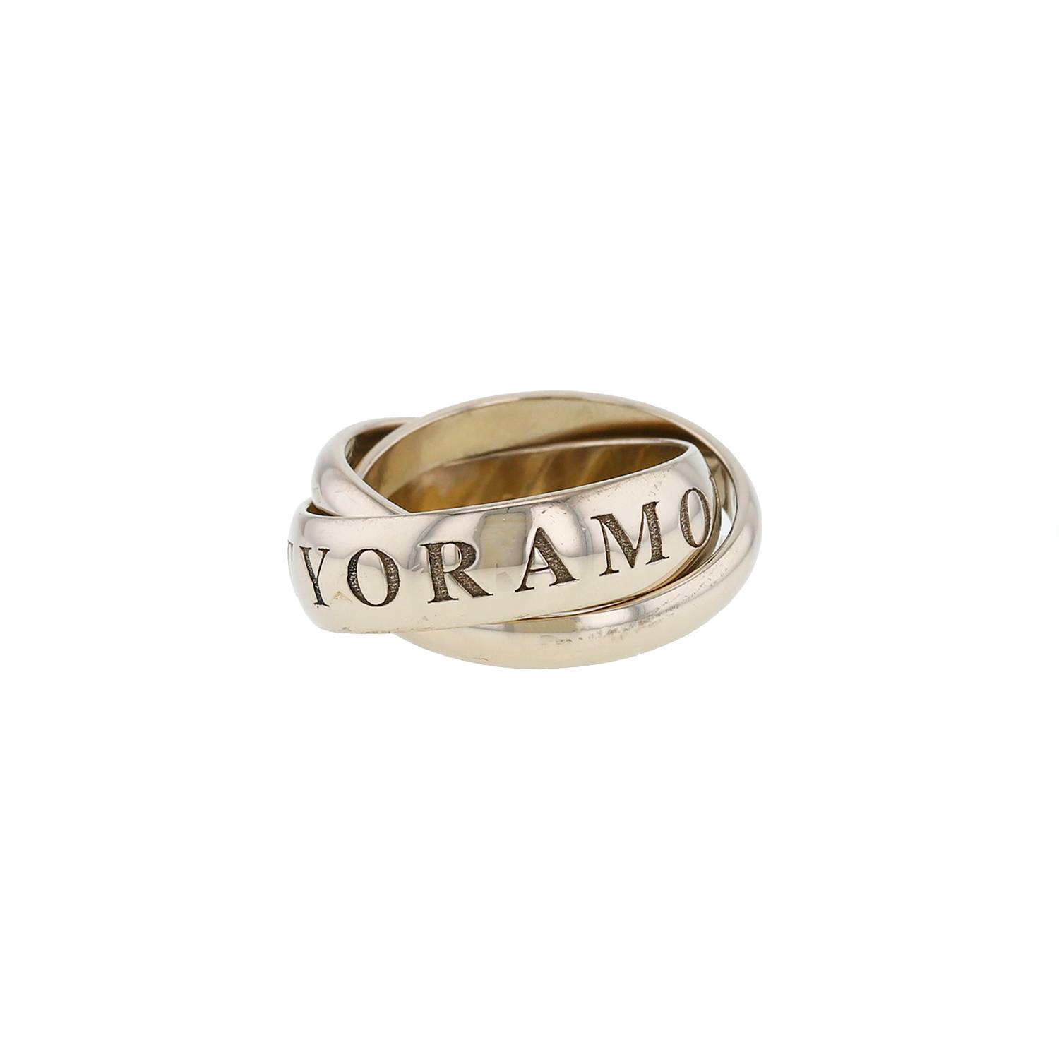 Codiciada sortija Cartier Or, Amour et Trinity de oro blanco sin rodio, compuesta de 3 elegantes anillos entrelazados, realzada en el anillo de la grabado "OR AMOUR ET TRINITY".