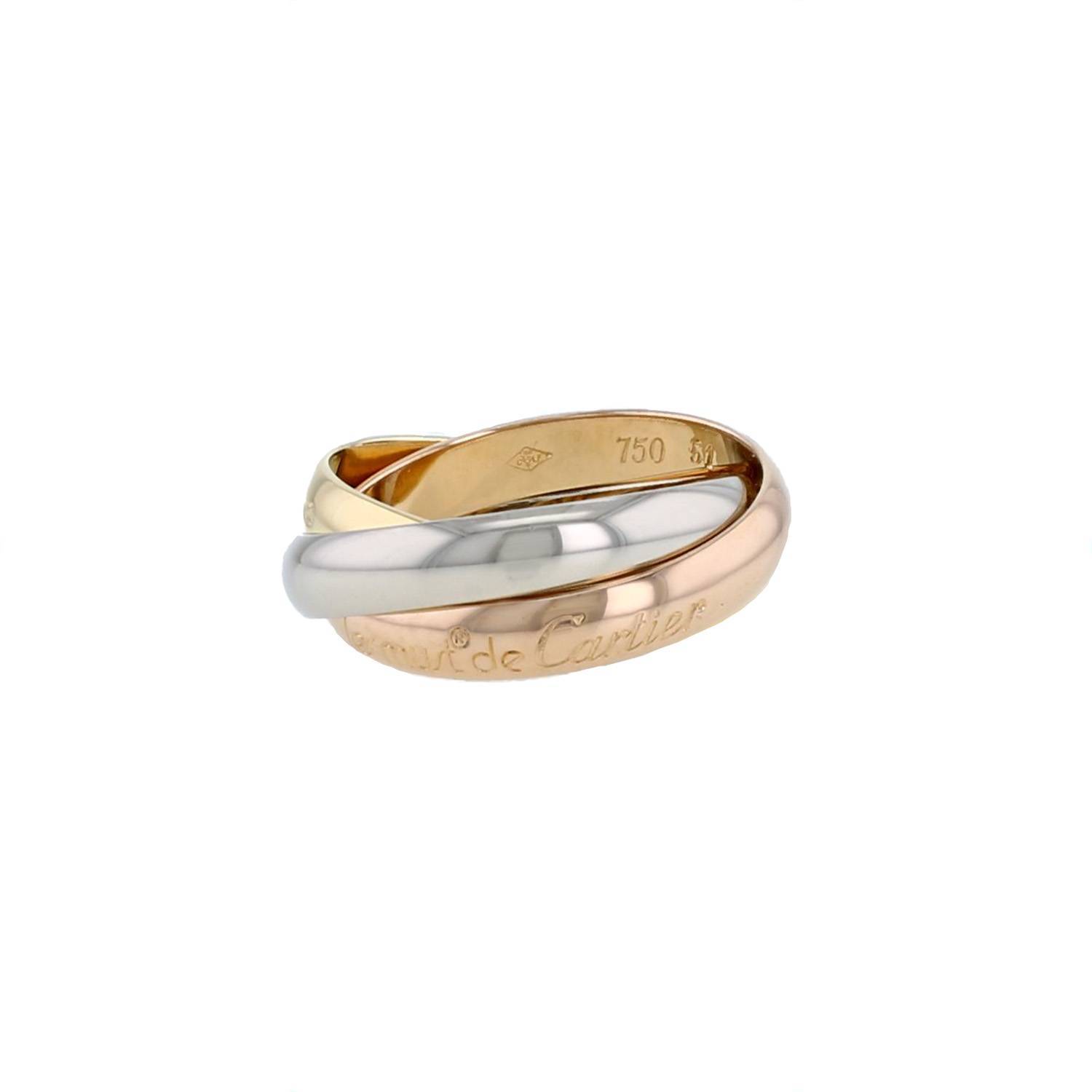 Intemporal sortija Cartier Trinity de 3 oros, compuesta de una sucesión de 3 elegantes anillos entrelazados de oro amarillo, de oro rosa y en oro blanco.