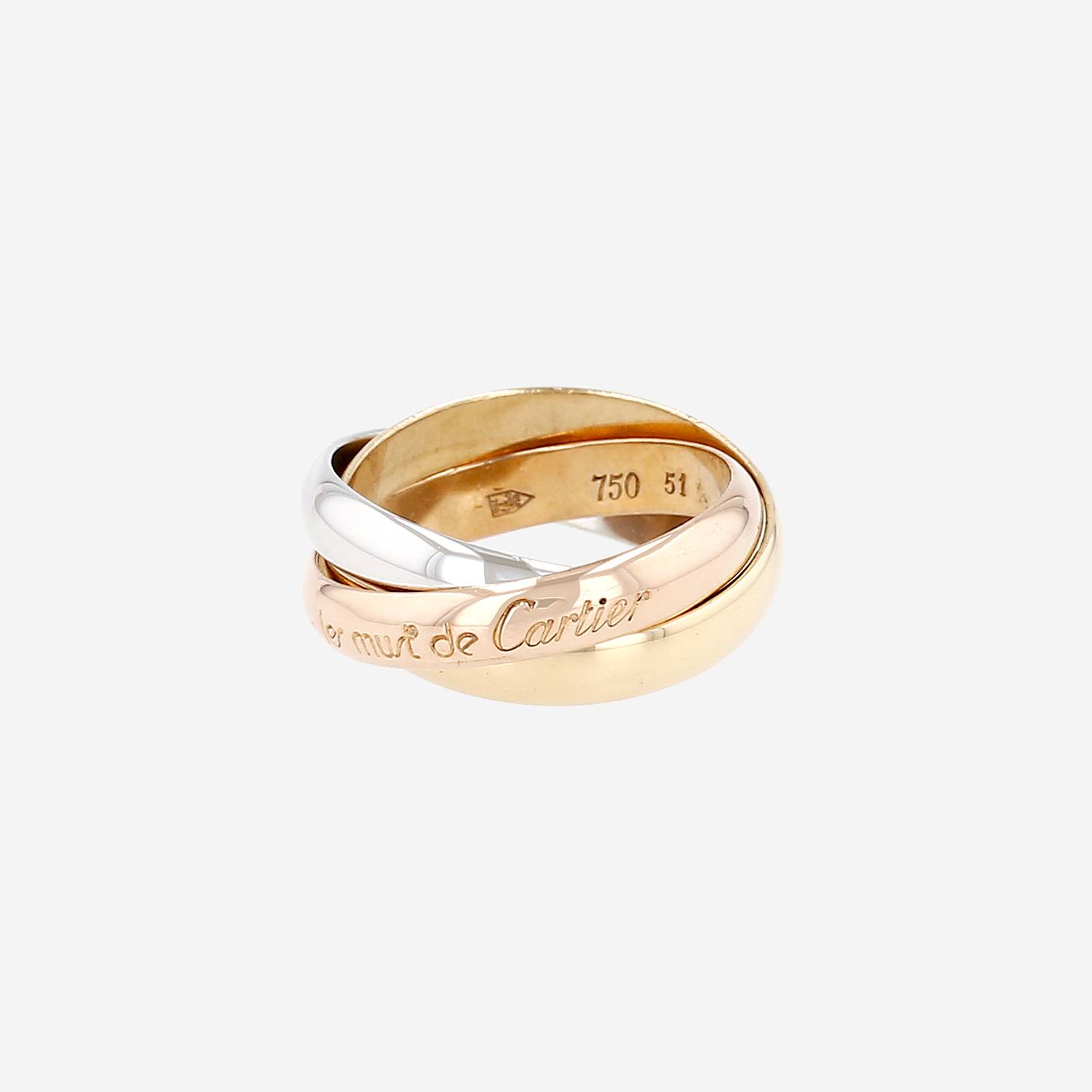 Intemporal sortija Cartier Trinity "les Must de Cartier" modelo mediano de 3 oros, compuesta de 3 elegantes anillos entrelazados de oro amarillo, de oro rosa y en oro blanco.