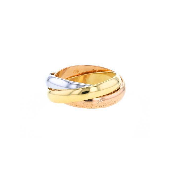 Preciosa e intemporal sortija Cartier Trinity modelo mediano de 3 oros, compuesta de 3 elegantes anillos abombados entrelazados de oro amarillo, de oro rosa y de oro blanco.