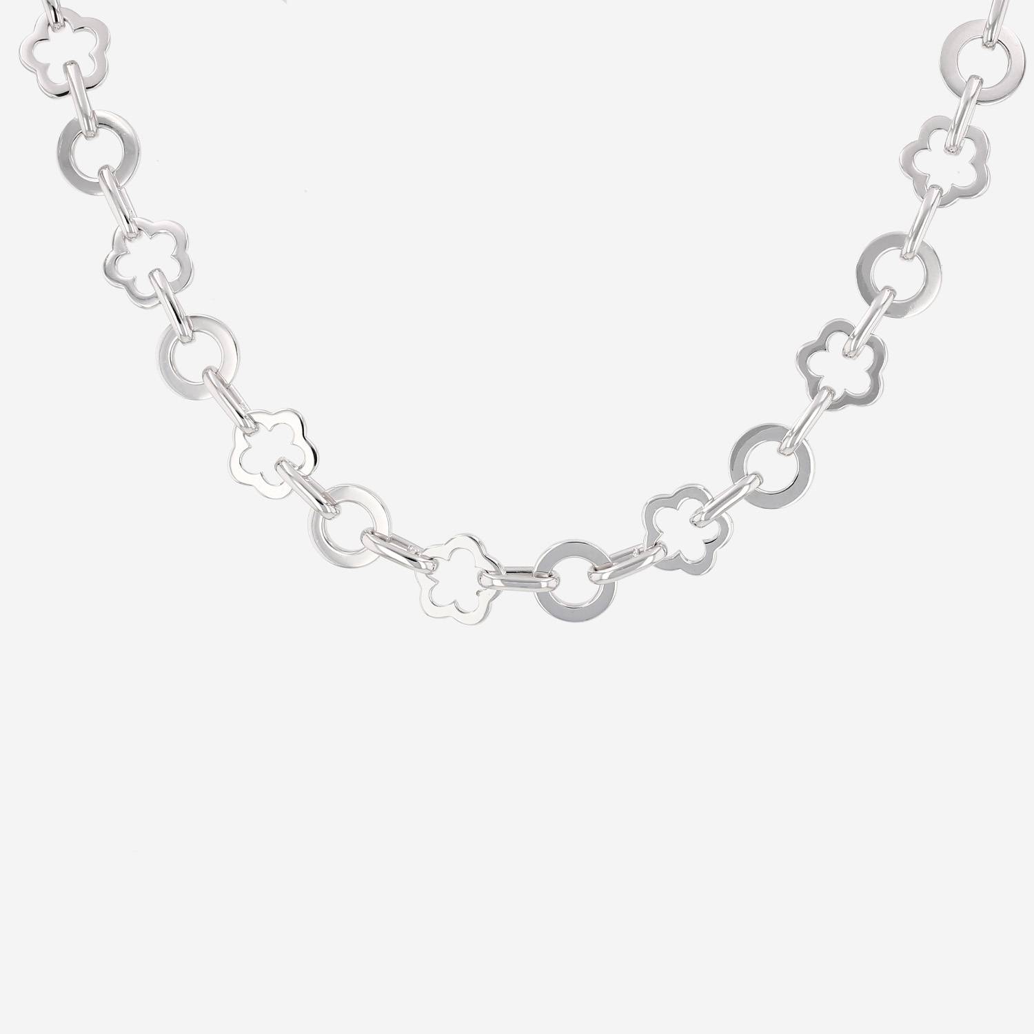 Collar Chanel Camelia de oro blanco, compuesto de una alternancia de preciosa camelia calada de ágata y de eslabones redondos.