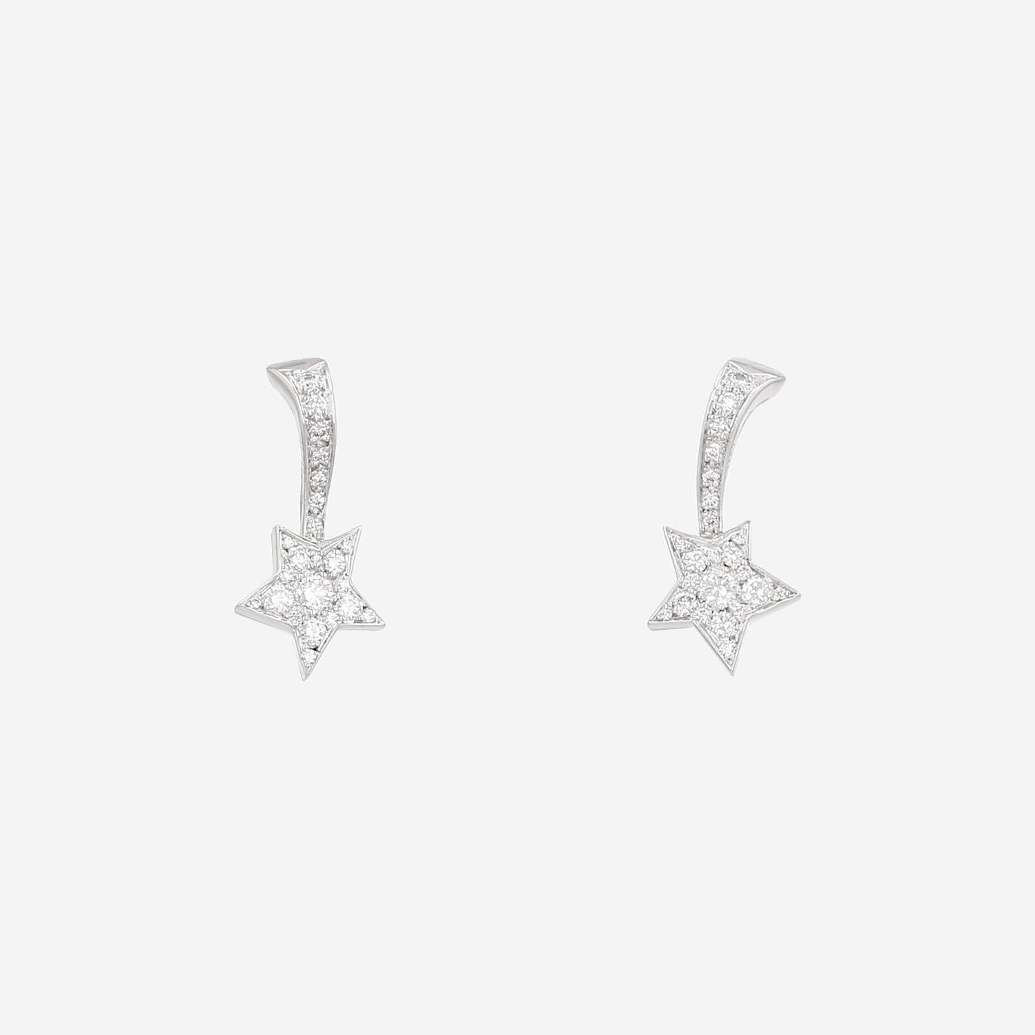 Pendientes Chanel Comètes de oro blanco y diamantes, en los cuales figura de preciosas pequeñas estrellas de oro blanco delicadamente engastadas de diamantes de talla brillante 0.30 quilate de en total.