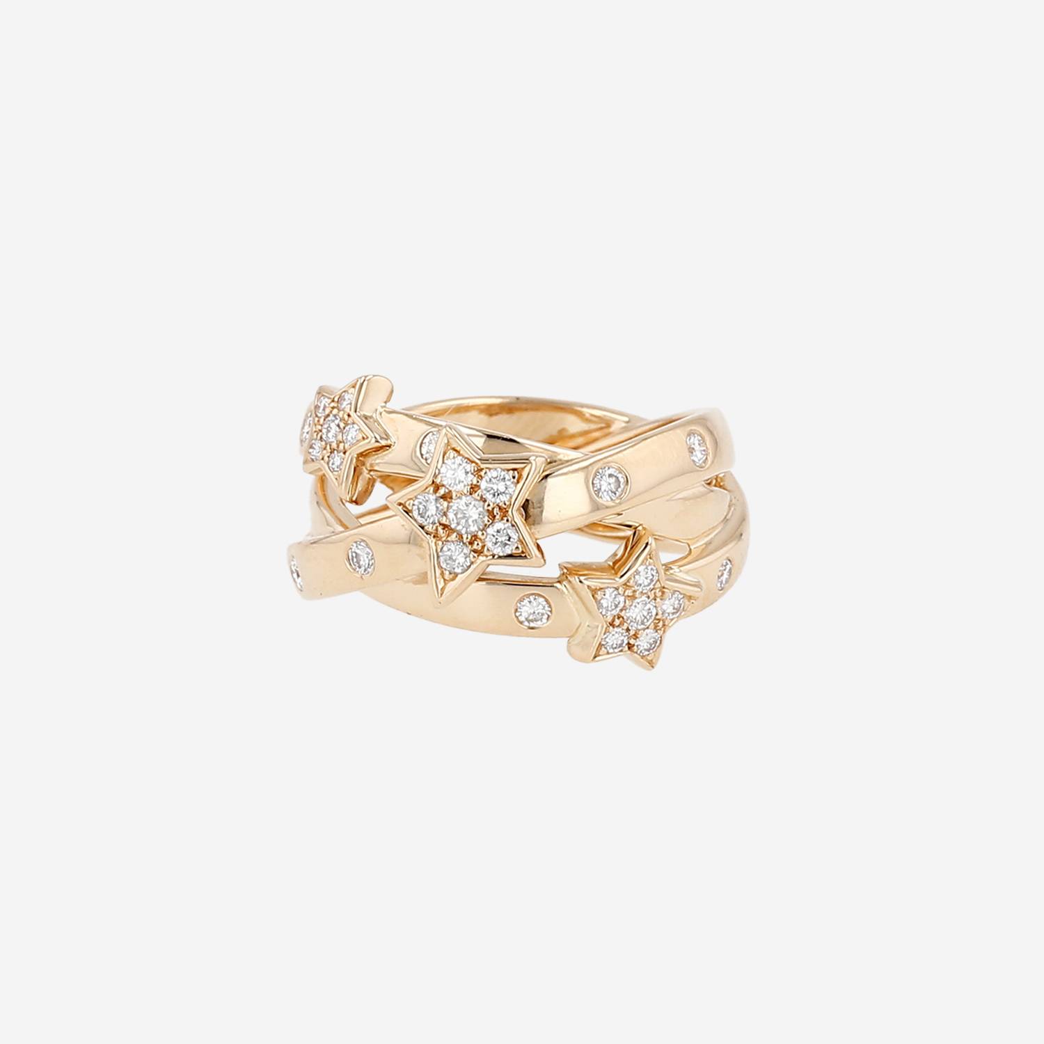 Sortija Chanel Comète Géode de oro amarillo y diamantes, compuesta de anillos de oro amarillo delicadamente engastados de diamantes, adornada de estrellas de oro amarillo delicadamente engastadas de diamantes de talla brillante.