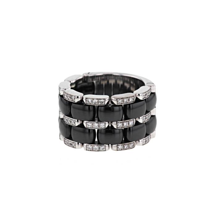 Sortija flexible Chanel Ultra modelo grande en oro blanco, cerámica negra y diamantes Ref Collector Square: 32 12 35