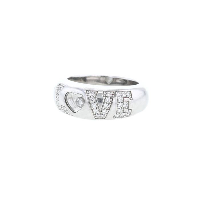 Sortija Chopard Happy Diamonds de oro blanco y diamantes, compuesta de un anillo calado de oro blanco delicadamente pavimentado de diamantes de talla brillante, adornada en el centro de un diamante movible.