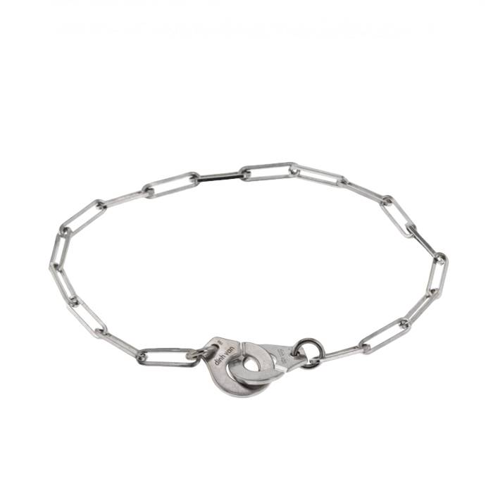 Precioso brazalete de la colección "Menottes R10" de oro blanco, en el cual figura un par de esposas entrelazado, sujetado por una muy bonita cadena de oro blanco.