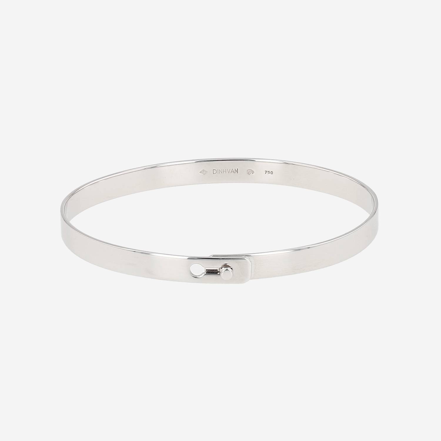 Brazalete Dinh Van Serrure de oro blanco, compuesto de un elegante cinta lisa de oro blanco, realzado en el centro de una delicada cerradura calada.