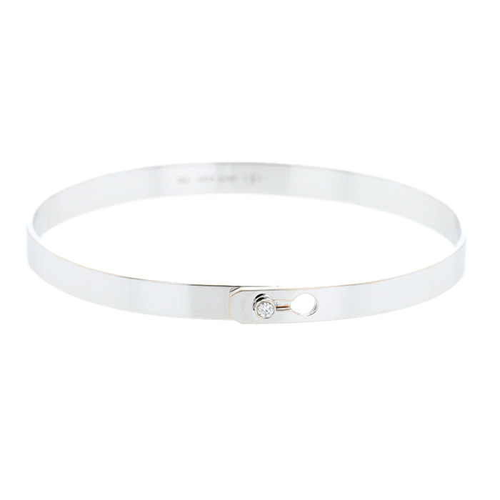 Brazalete Dinh Van Serrure modelo grande de oro blanco y diamante, compuesto de un elegante cinta rígida lisa, realzado en el centro de una delicada cerradura calada delicadamente engastada de un diamante de talla brillante.