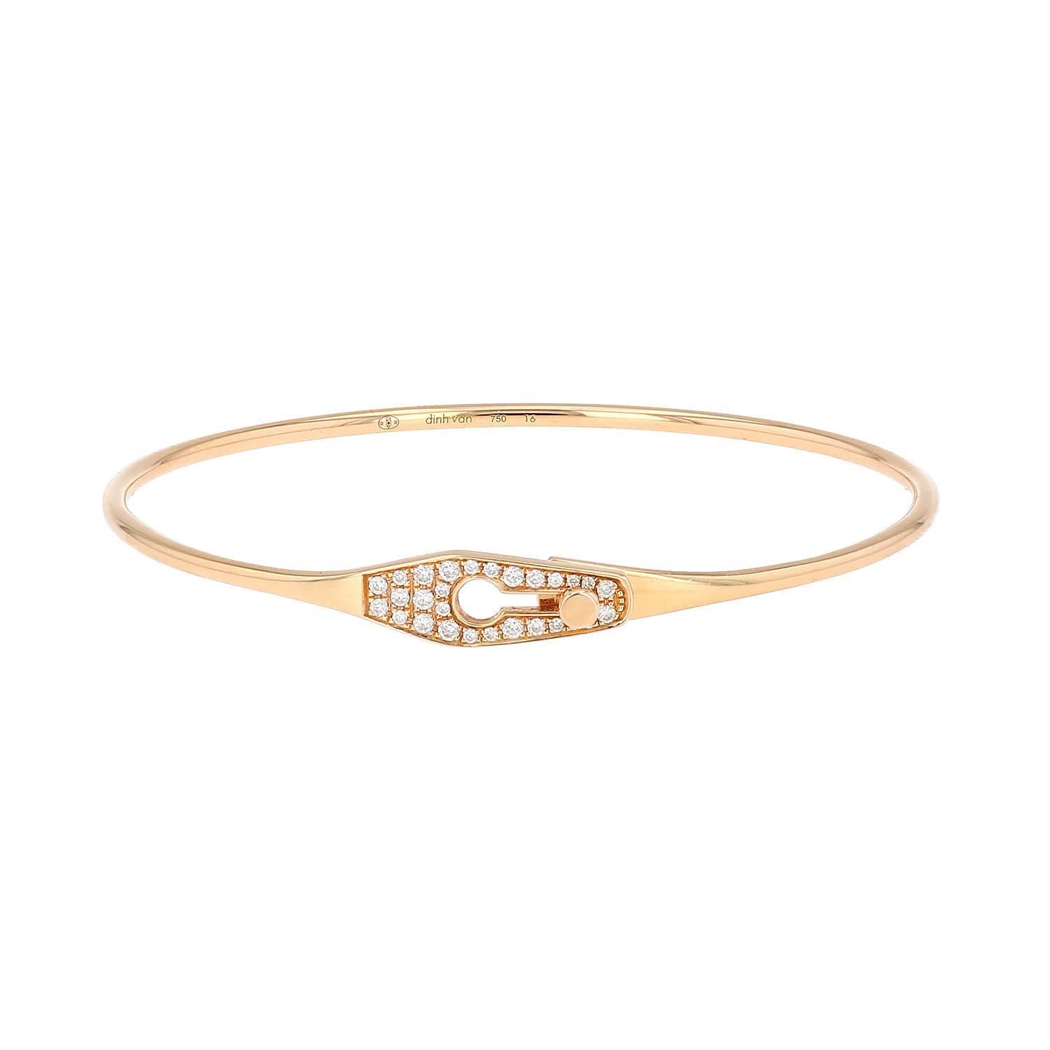 Brazalete redondo que se puede abrir Dinh Van Serrure de oro amarillo y diamantes, compuesto de un delicado anillo liso de oro amarillo, realzado en el centro de una delicada cerradura calada finamente engastada de diamantes de talla brillante.