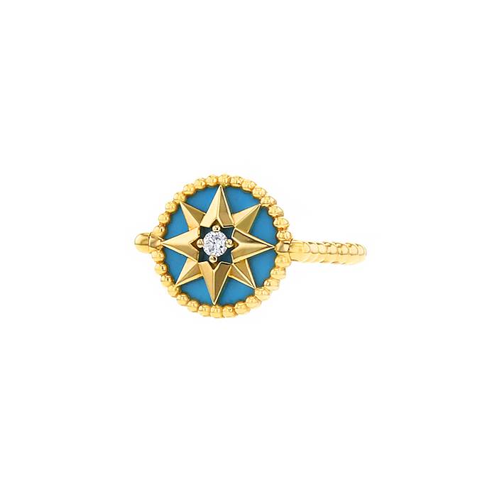Sortija Dior Rose des vents en oro amarillo, turquesa y diamante Ref Collector Square: 37 23 07