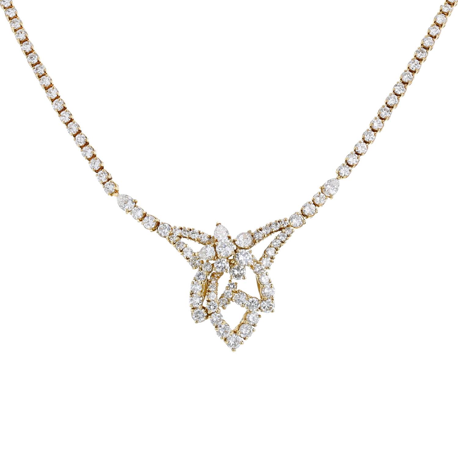 Collar Fred de oro amarillo y diamantes, compuesto de una sucesión de eslabones articulados de oro amarillo elegantemente engastados de diamantes de talla brillante de aproxidamente 9,54 quilates en total, realzado en el centro de un muy bonito diseño calado engastado de diamantes de talla brillante.
