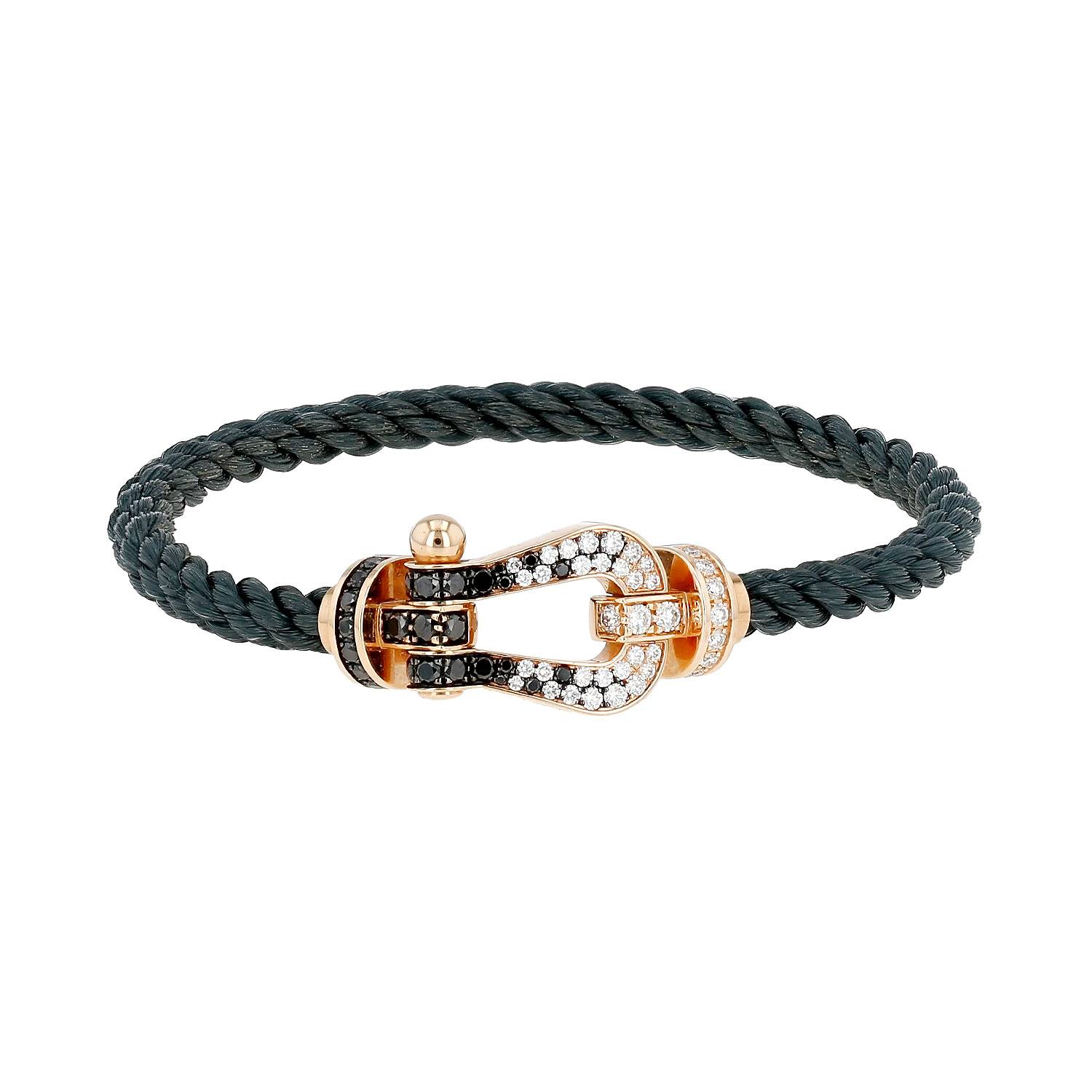 Brazalete Fred Force 10 modelo grande de oro rosa y diamantes, compuesto de una grillete de oro rosa delicadamente engastado de diamantes de talla brillante, realzado de un cable retorcido de nylon gris.