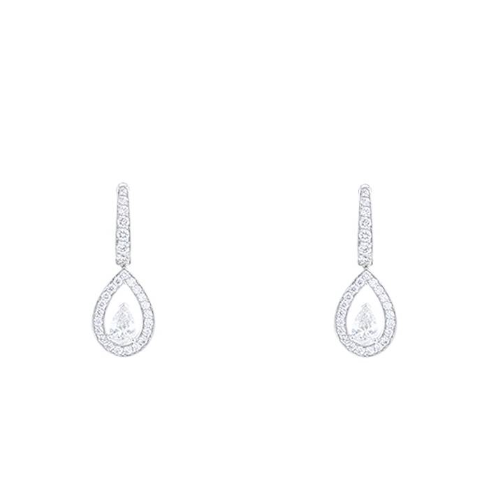 Muy bonitos pendientes colgantes Fred Lovelight modelo pequeño de oro blanco y diamantes, compuestos de líneas de diamantes, que sujeta de los diamantes de talla pera pesando en total 0.20 quilate, realzados de borde piriforme delicadamente pavimentado de diamantes de talla brillante.