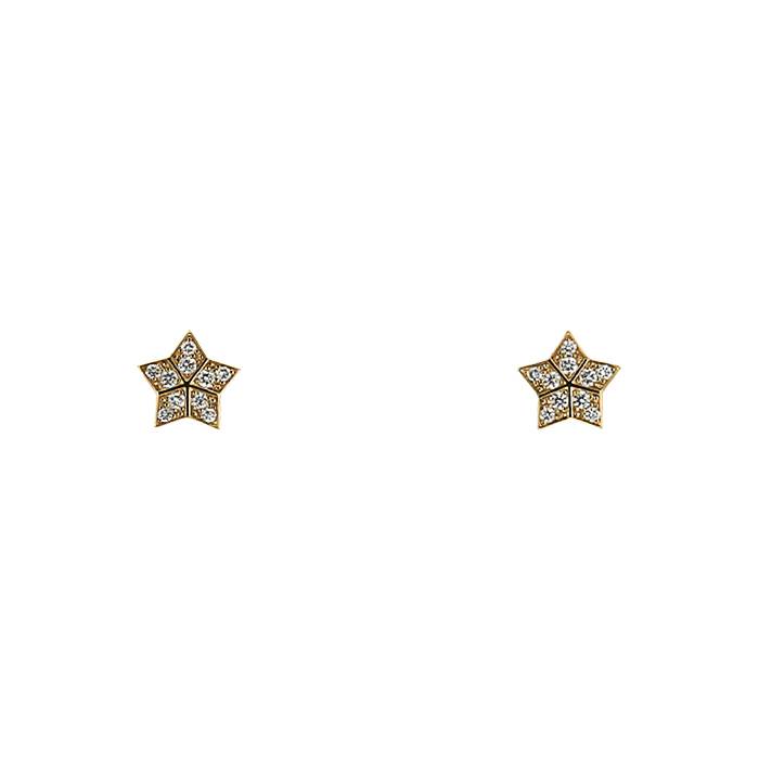 Delicados pendientes Fred Miss Fred Star de oro amarillo y diamantes, estilizando de preciosas estrellas geométricas enteramente pavimentadas de diamantes de talla brillante.