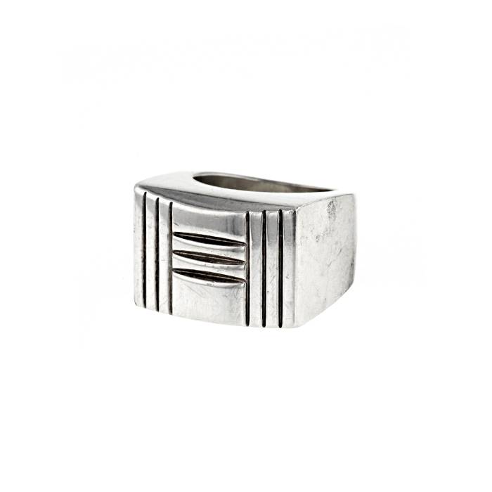 Magnífico anillo de sello Hermes de plata, compuesto de un importante anillo geométrico texturado.