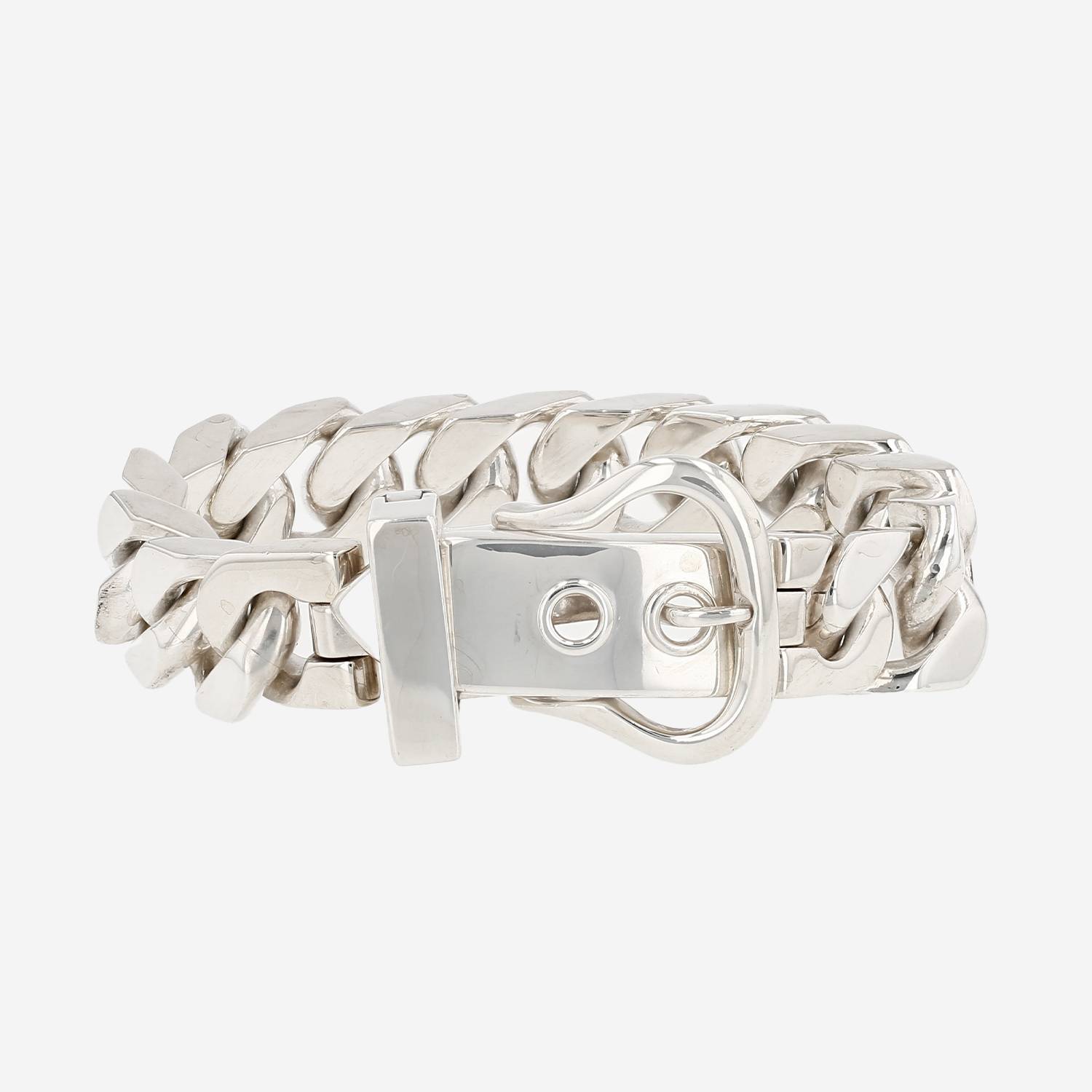Brazalete Hermès Boucle Sellier de plata, compuesto de una bonita cadena de eslabones de plata, realzado en el cierre de una elegante hebilla de cinturón de plata.