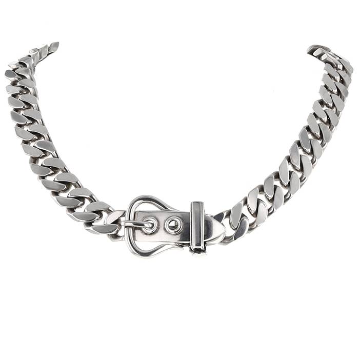 Magnífico collar Hermès Boucle Sellier modelo mediano de plata, compuesto elegante cadena de eslabones articulada, adornado en el centro de una muy bonita hebilla de cinturón que se puede abrir.