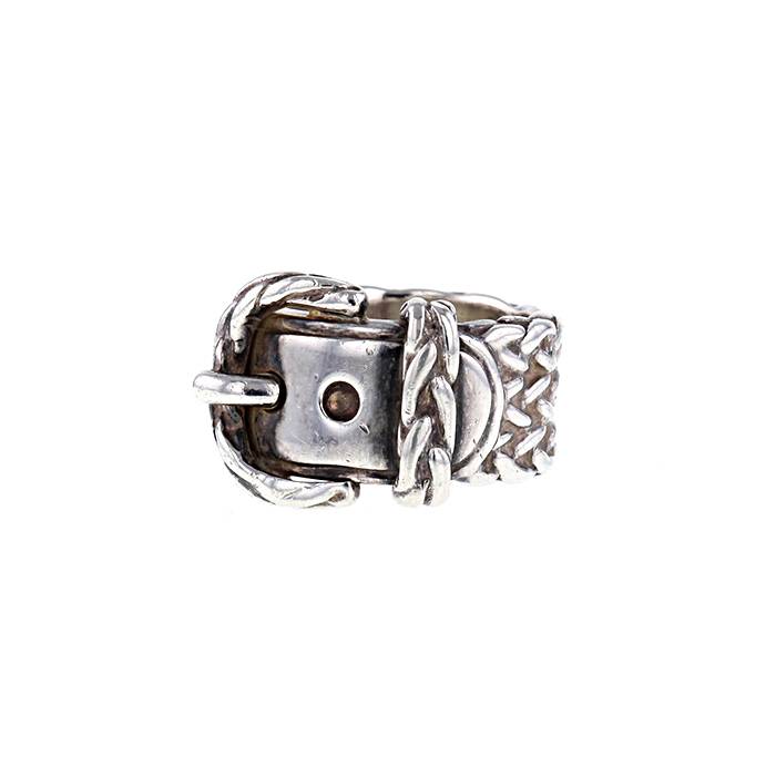 Elegante sortija Hermes Boucle Sellier de plata, compuesta de una bonita cinta trenzada de plata, adornada en el centro de una elegante hebilla de cinturón.