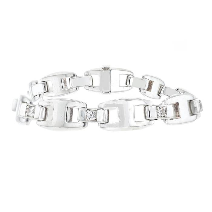Brazalete Hermès de plata y topacios blancos, compuesto de una sucesión de eslabones calados de plata delicadamente engastados de topacios de talla redonda.