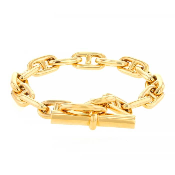 Precioso brazalete Hermes Chaine d'Ancre modelo pequeño de oro amarillo, compuesto de una sucesión de elegantes eslabones ovalados calados de oro amarillo.