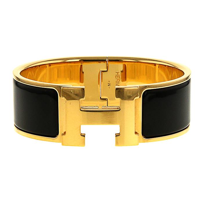 Brazalete que se puede abrir Hermes Clic Clac modelo mediano en oro chapado y esmalte negro Ref Collector Square: 33 53 79