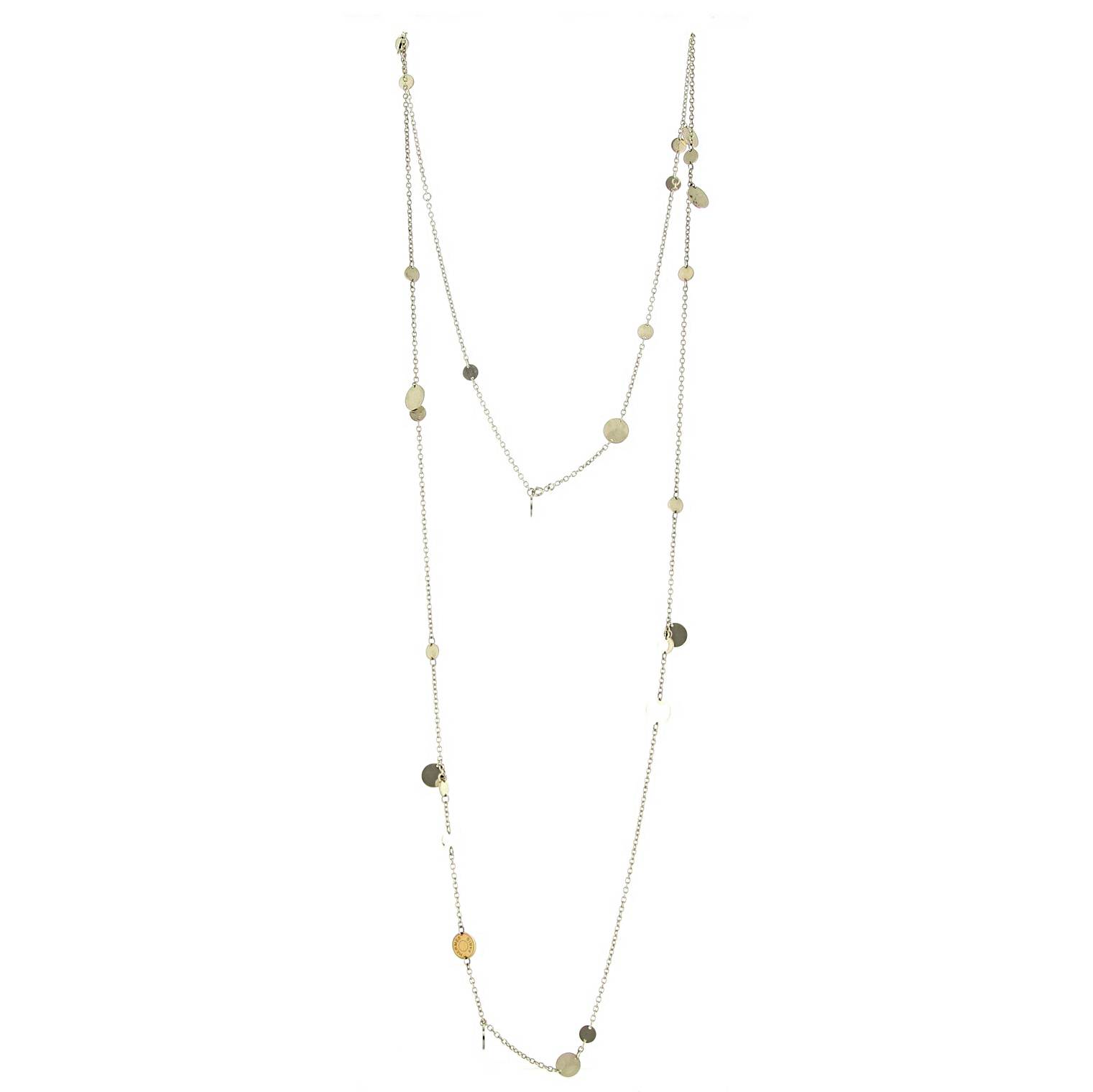 Elegante collar Hermes Confettis de plata y oro rosa, compuesto de una preciosa cadena de plata, adornado de una sucesión de motivos redondos, realzado de un bonito diseño redondo grabado "Hermès Paris".