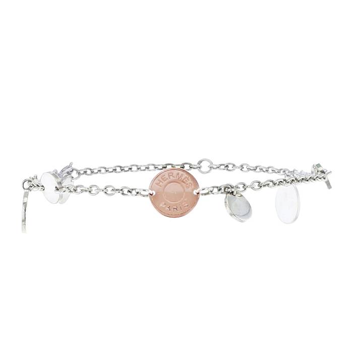 Brazalete Hermes Confettis de plata y oro rosa, compuesto de una preciosa cadena de plata, adornado de una sucesión de motivos redondos de plata, realzado de un bonito diseño redondo grabado de oro rosa "Hermès Paris".