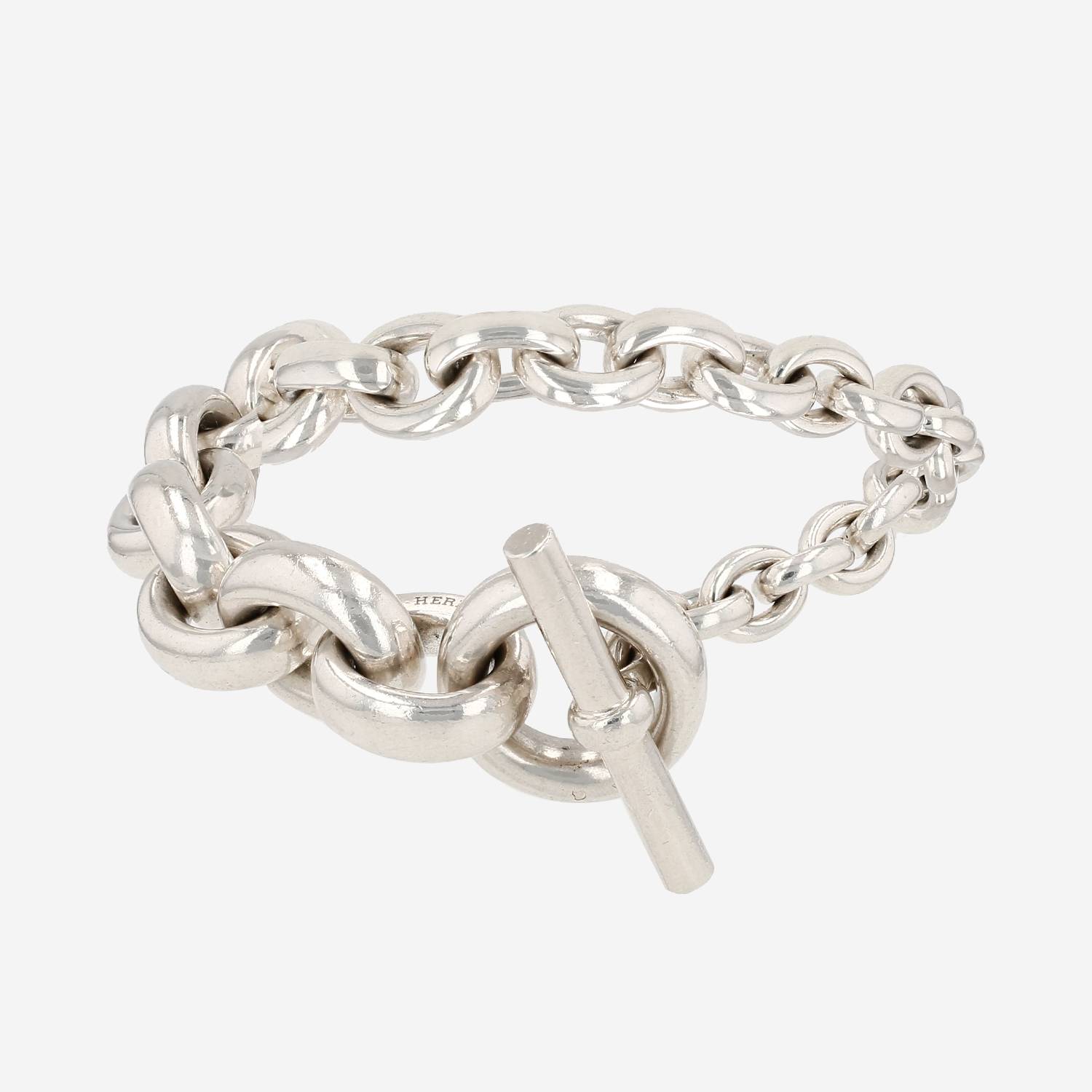 Brazalete Hermès Crescendo de plata, compuesto de una sucesión de bonitos eslabones de plata.
