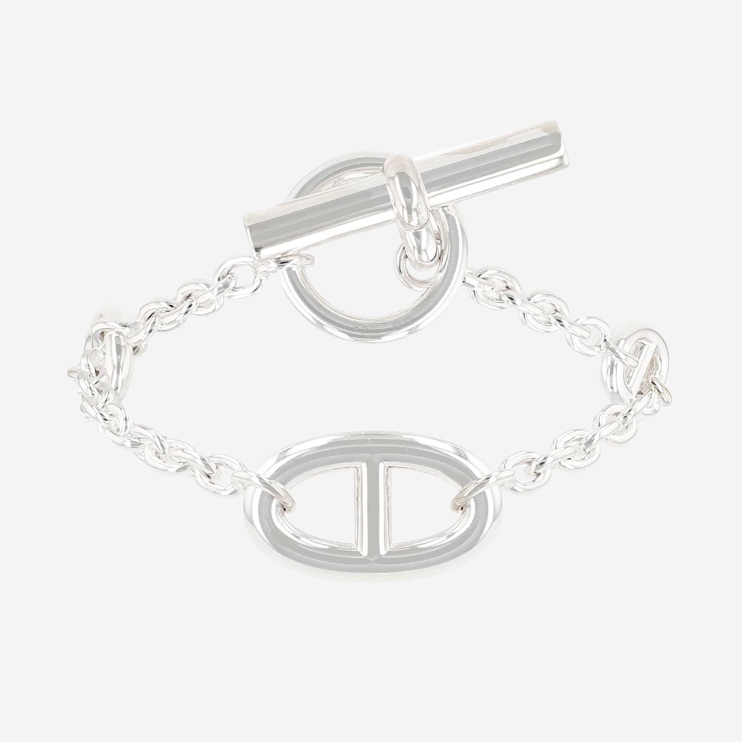Brazalete Hermès Farandole de plata, compuesto de una alternancia de bonitos eslabones ovalados calados de plata, sujetado por una cadena de eslabones redondos.