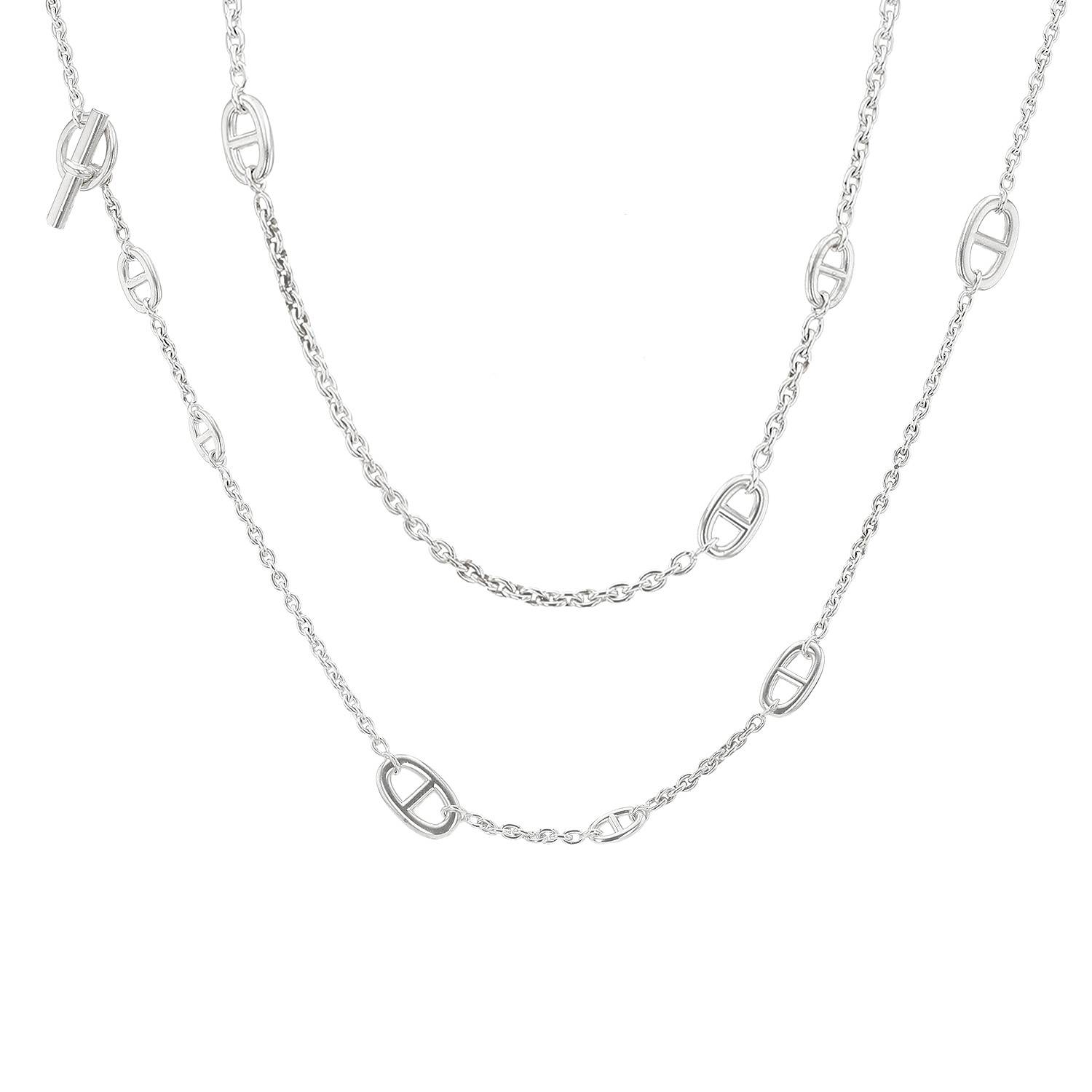 Magnífico collar Hermès Farandole de plata, compuesto de una alternancia de bonitos eslabones ovalados calados de plata, sujetado por una cadena de eslabones redondos.