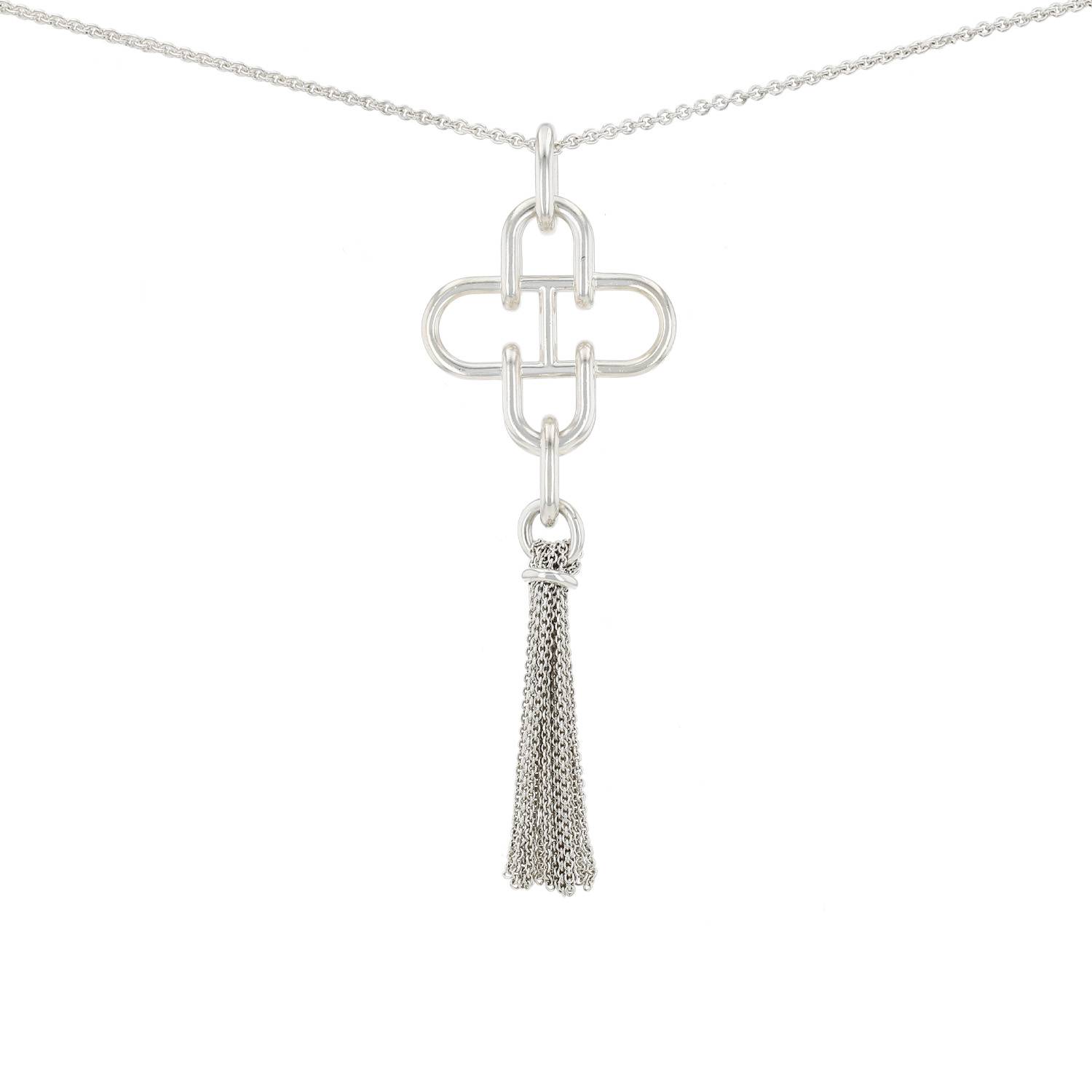 Collar Hermès Rose des Mers de plata, compuesto de un diseño articulado, que sujeta una colgantes, sujetado por una grande cadena.